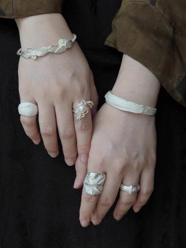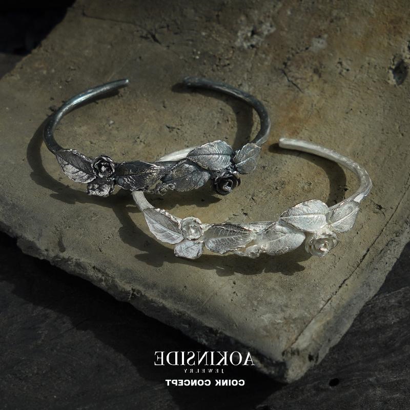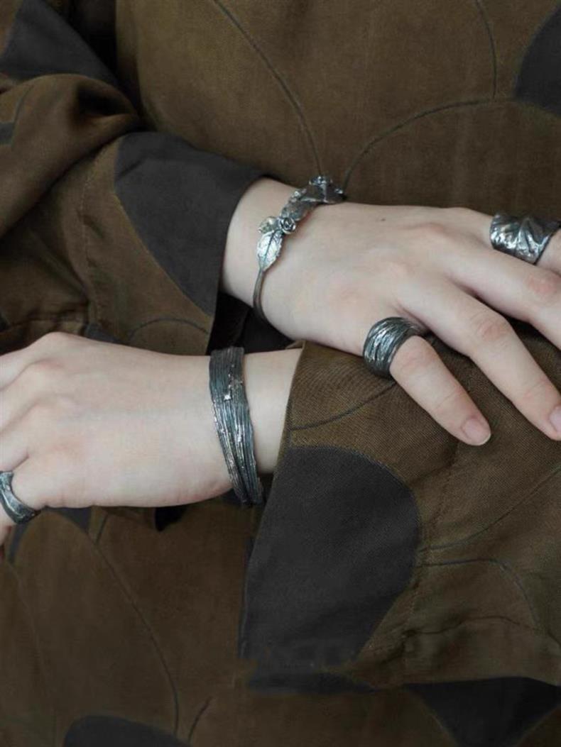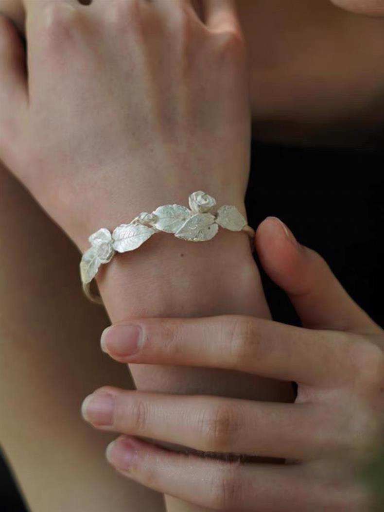 RORY深水静流シリーズバラ葉庭ブレスレット925純銀手作り質感筋理銀飾り