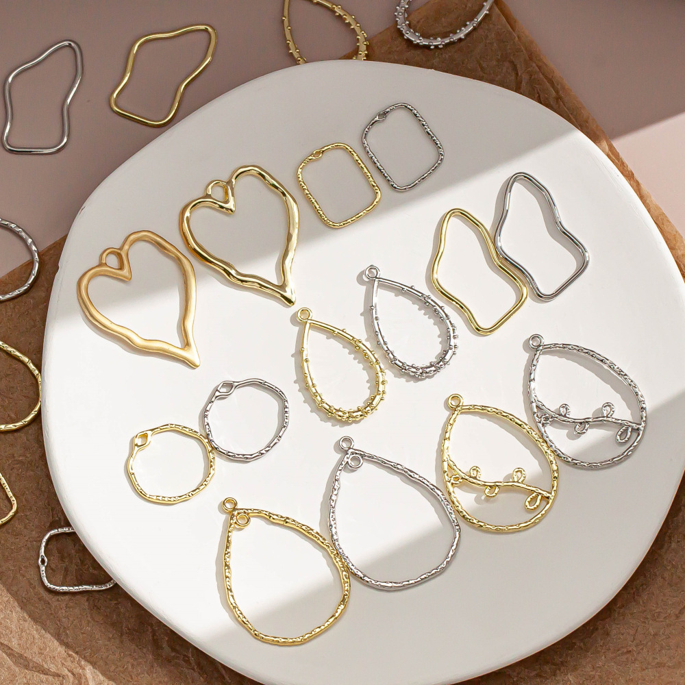 幾何学的な中空ラウンドウォータードロップスクエアラブプリーツシンプルなペンダント DIY ジュエリーイヤリングアクセサリー素材
