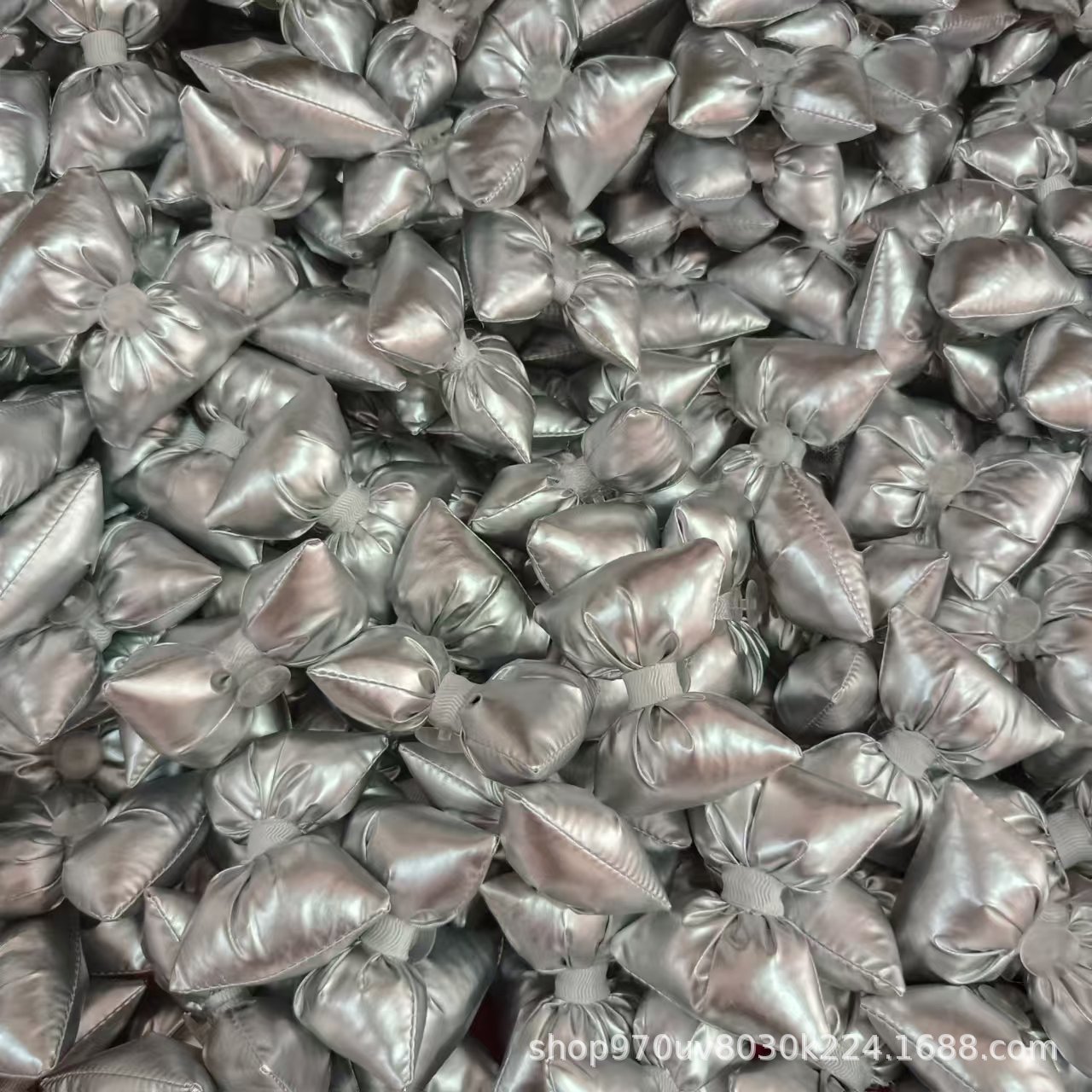 新しい7cmの蝶結びの服のアクセサリーの部品の半製品は綿の銀色を満たして靴の皮革のアクセサリーの卸売りを包みます。