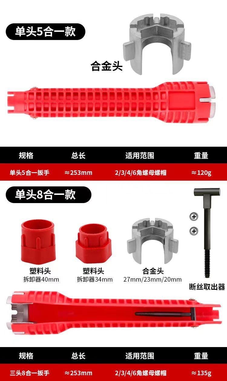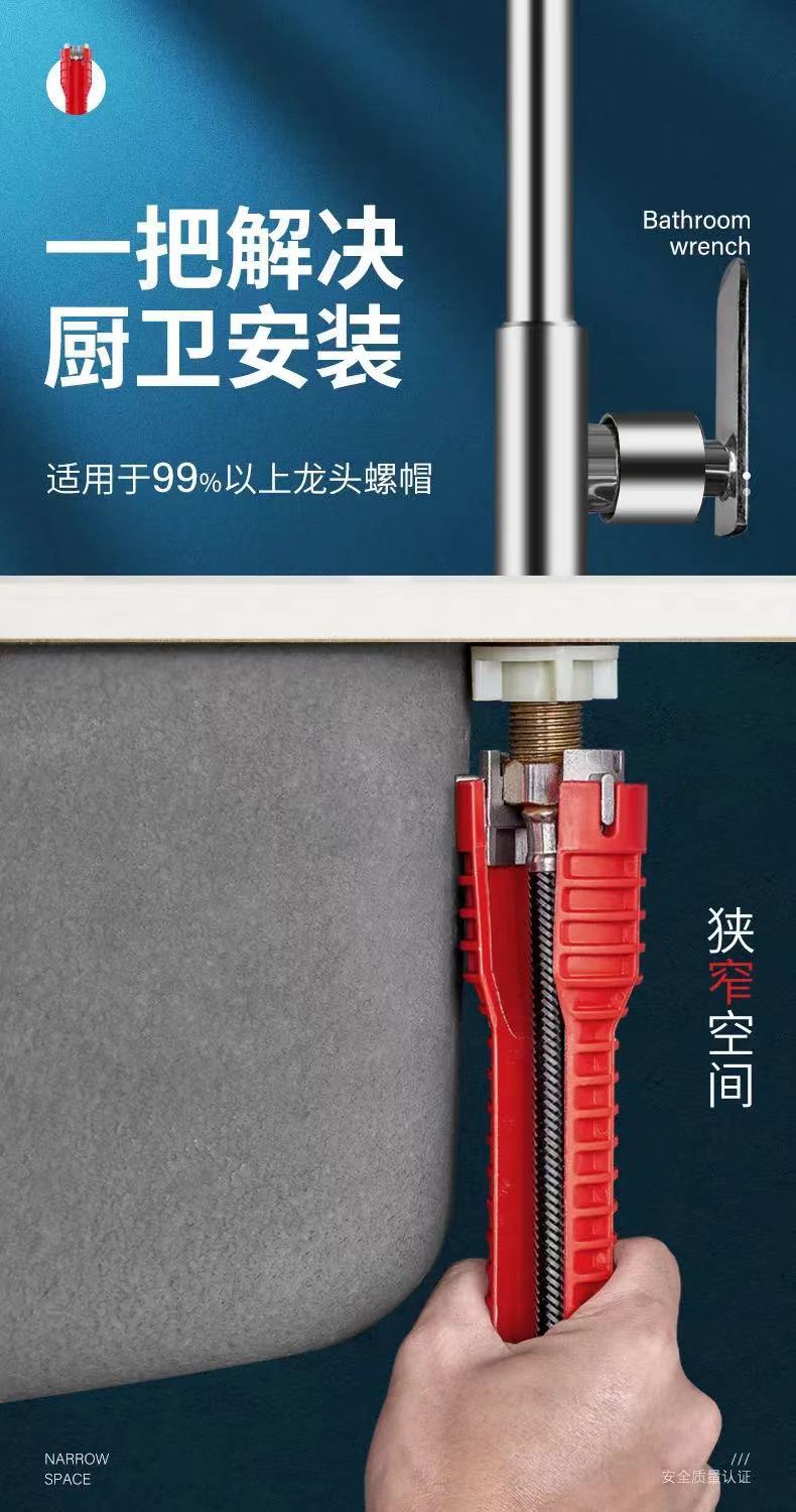 多機能水槽レンチ万能八合一蛇口風呂専用神器家庭用水道管ねじり器工具