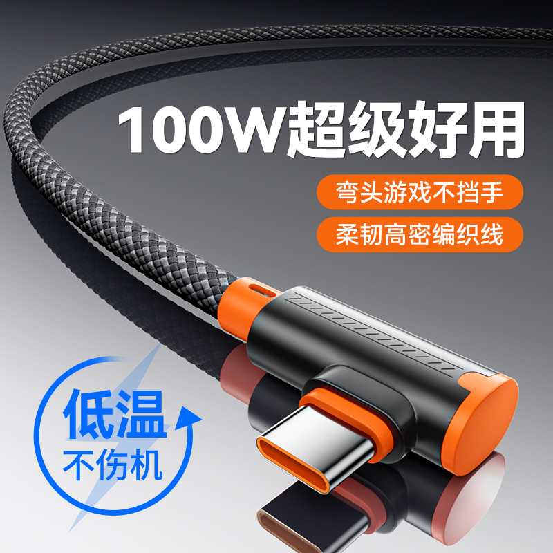 100W弯头编织快充数据线6A适用安卓华为荣耀Type-C接口手机闪充线