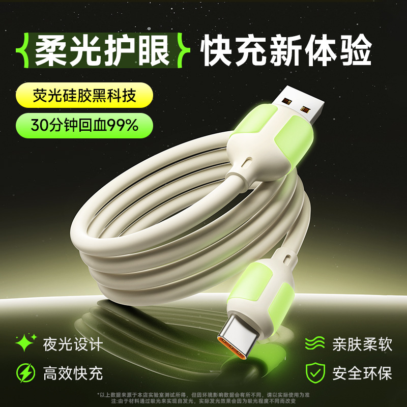 100W全銅軟質蛍光テープ付きデータケーブル、Android、Apple、Huawei、Type-C携帯電話対応、急速充電ケーブル
