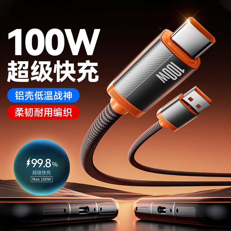 新款铝壳编织数据线100W适用苹果安卓华为typec手机车载充电线器