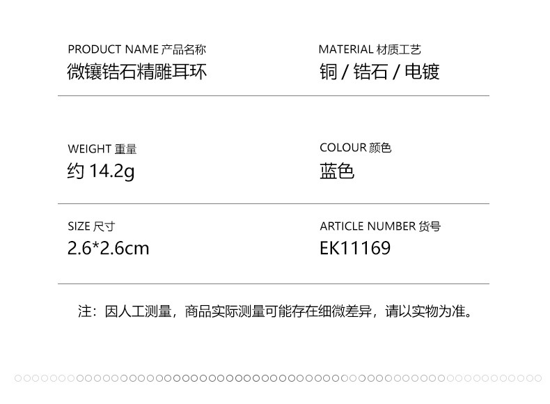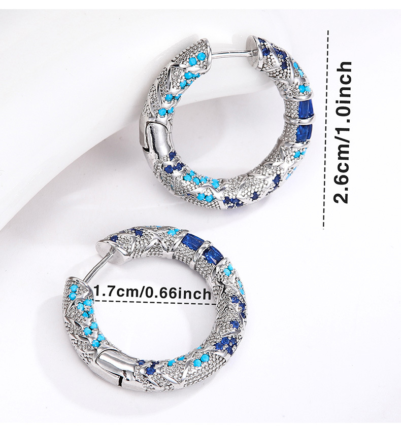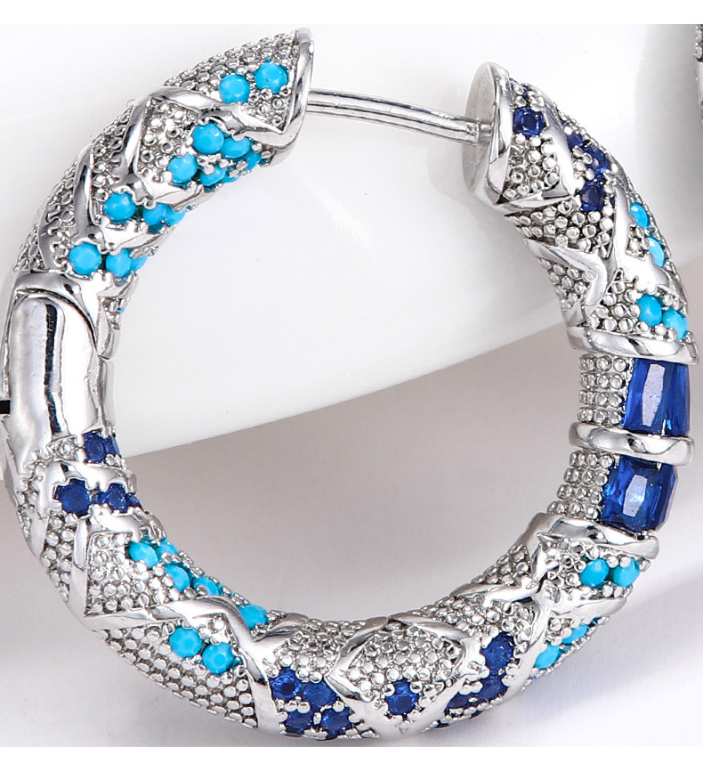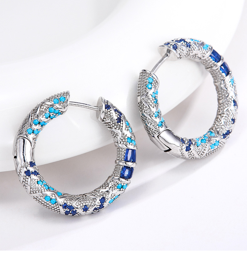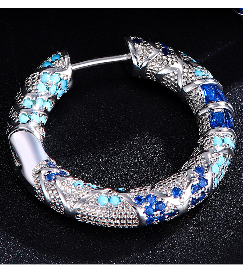ボヘミアン風ブルー微象嵌ジルコンエナメルカラーイヤリング、中古イヤリング、イヤリング卸売、ファッショナブルで万能、美白効果あり