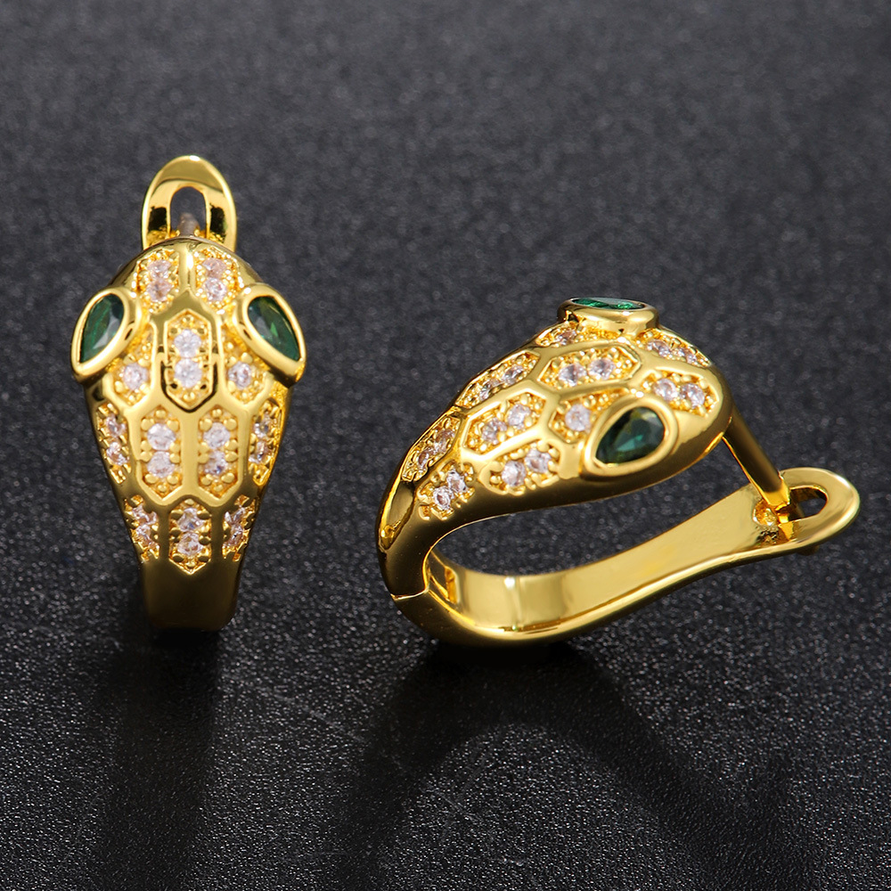 欧米の人気フランスの祖母緑ジルコン霊蛇女史の耳は欧米の創意の金の耳飾りの生肖蛇の耳を掛けます。