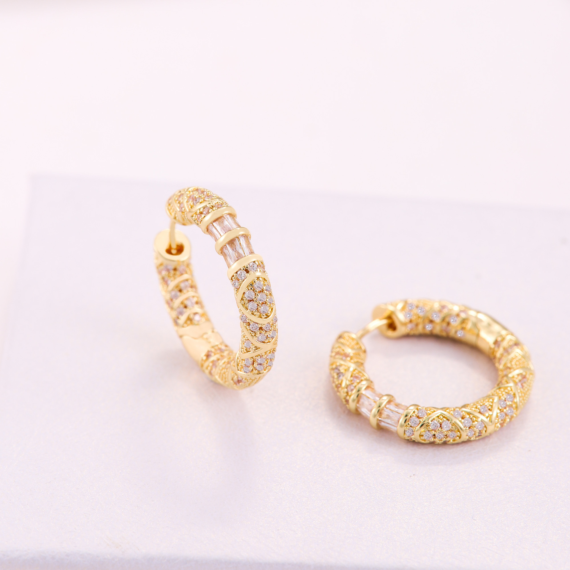 18k真空メッキ金メッキ韓国版C形ダイヤモンドリングイヤリング女性ツイスト鋼ペプチド円形シンプルイヤリング女性