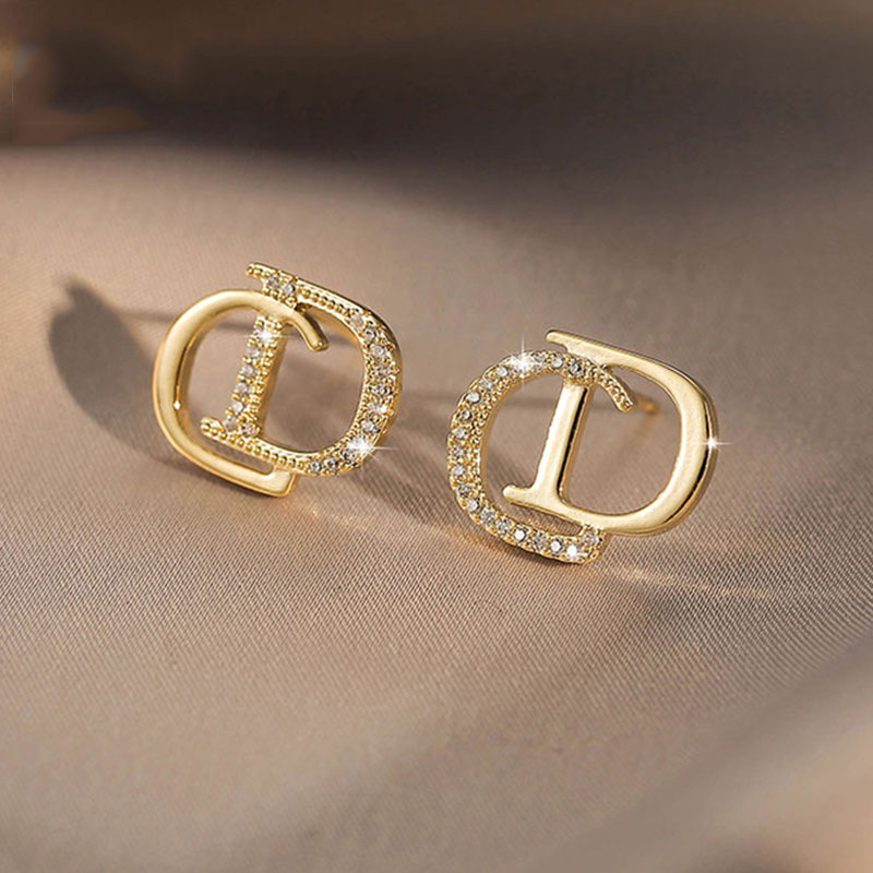 クロスボーダー冷たい風CDアルファベットピアス女性大衆デザイン感2022年新型ファッションイヤリング軽豪華銀針耳飾り