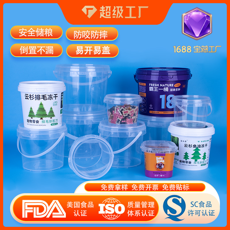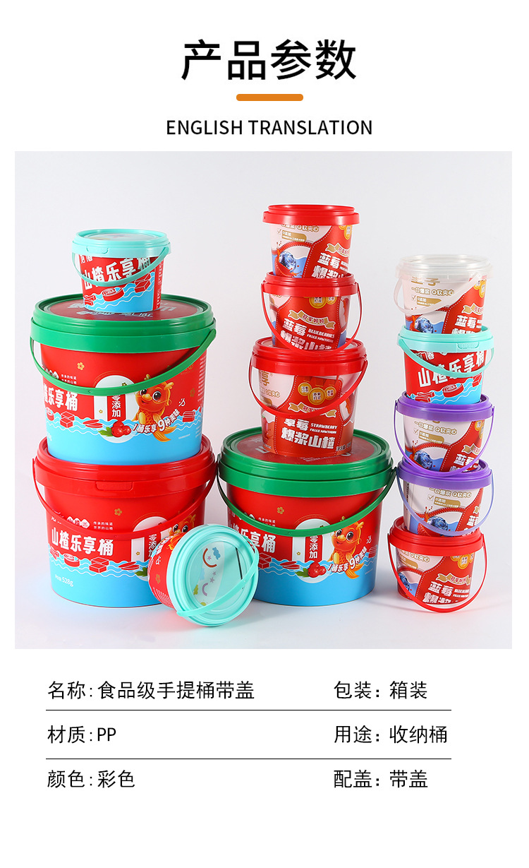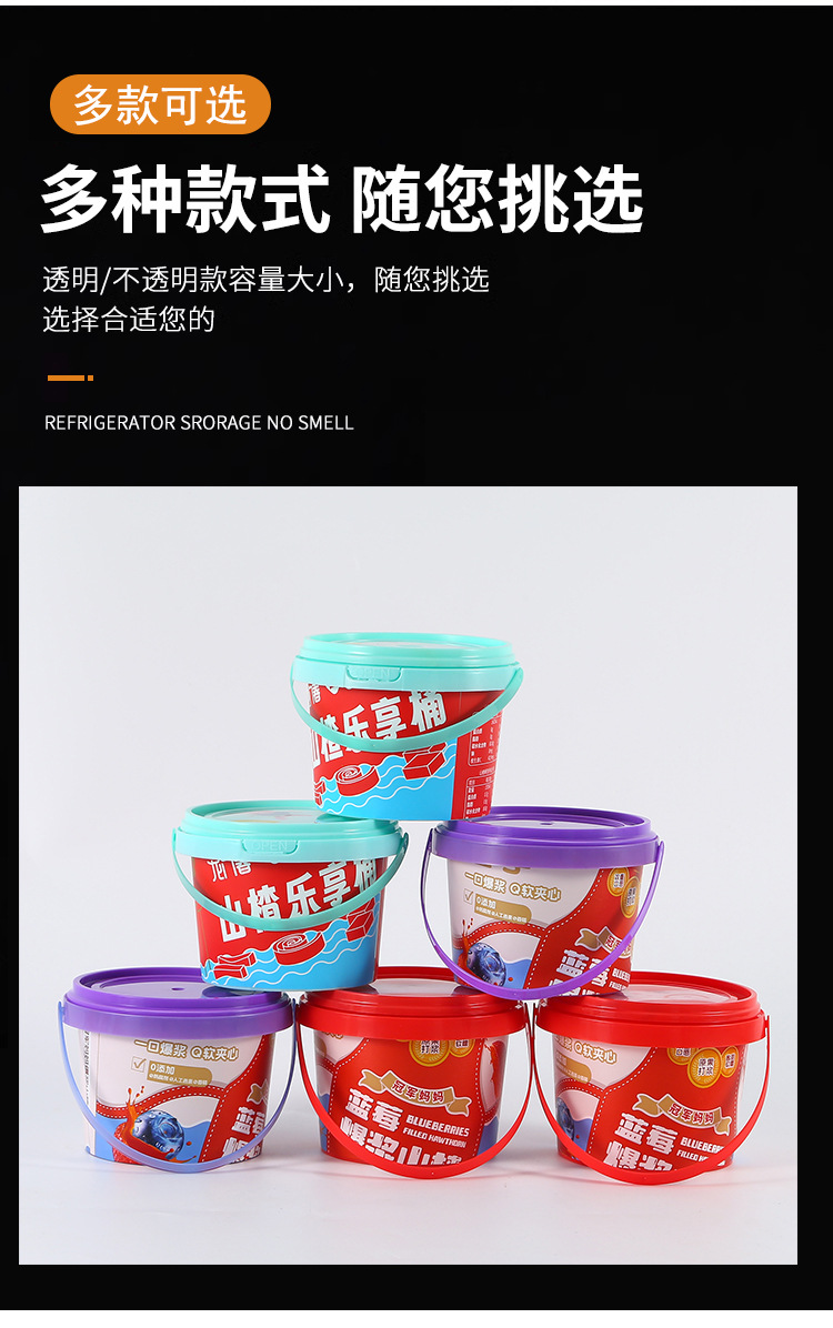 メーカーカラー蓋手提げプラスチック桶0.3-5L透明収納キャンディー玩具桶食品級PP材質カスタマイズ