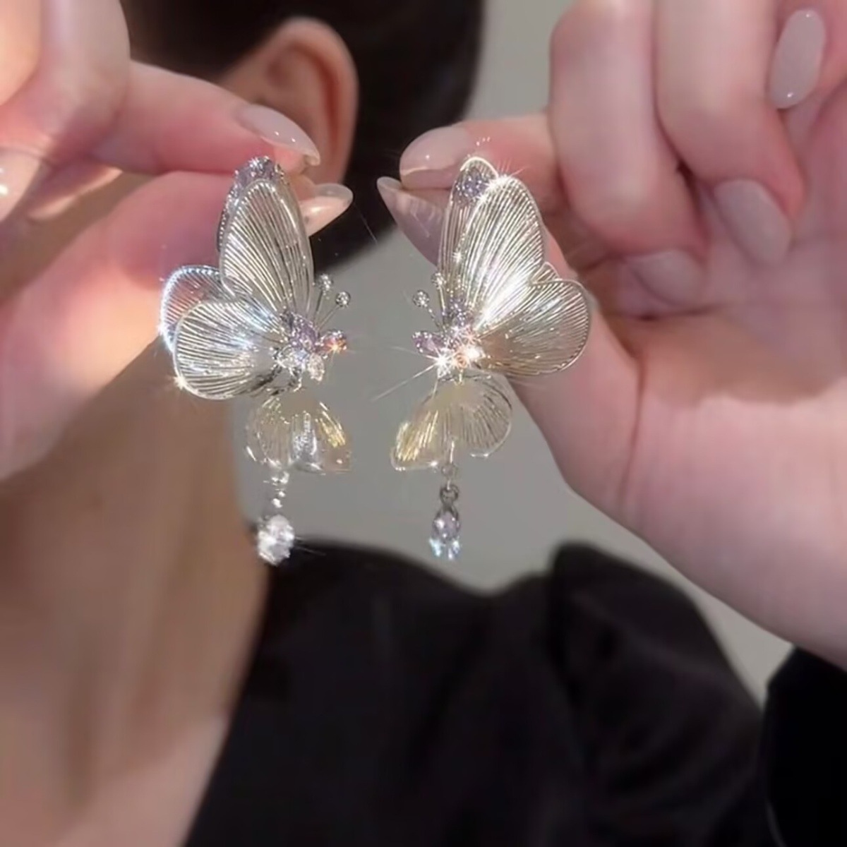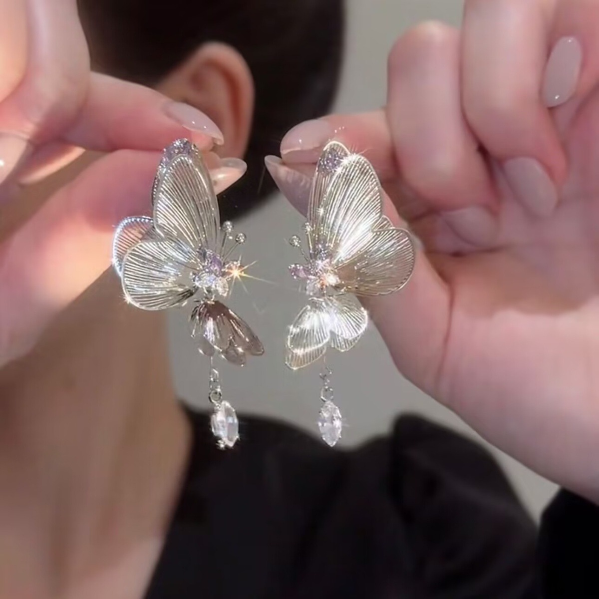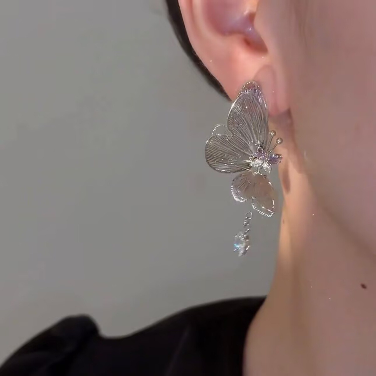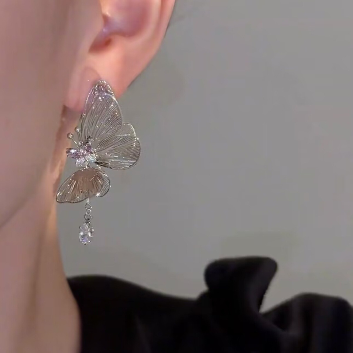 高级感たっぷりのジルコンと豪华な风蝶s925シルバーピアス女性の夏の豪华な雰囲気のおしゃれな女性のピアス