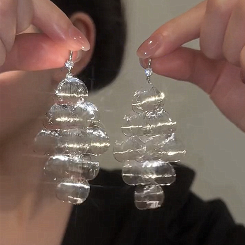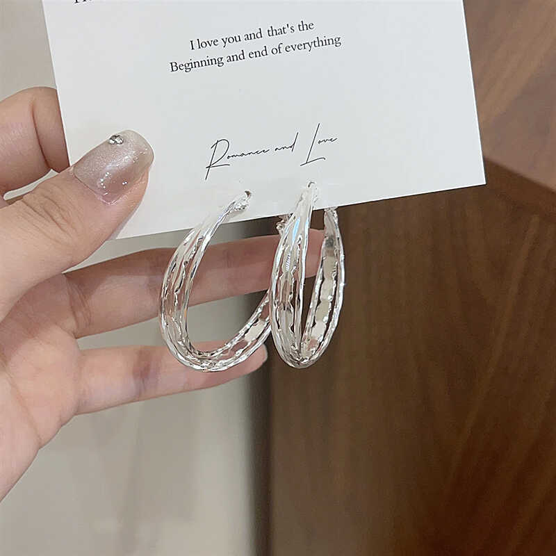 銀色立体三層耳輪S925銀針耳飾り銀色大耳輪イヤリング欧米誇張デザイン感多層