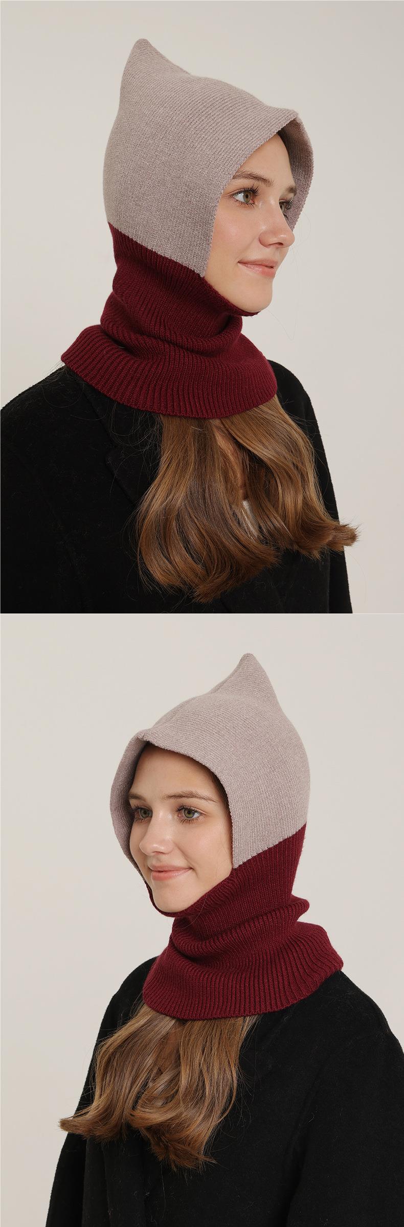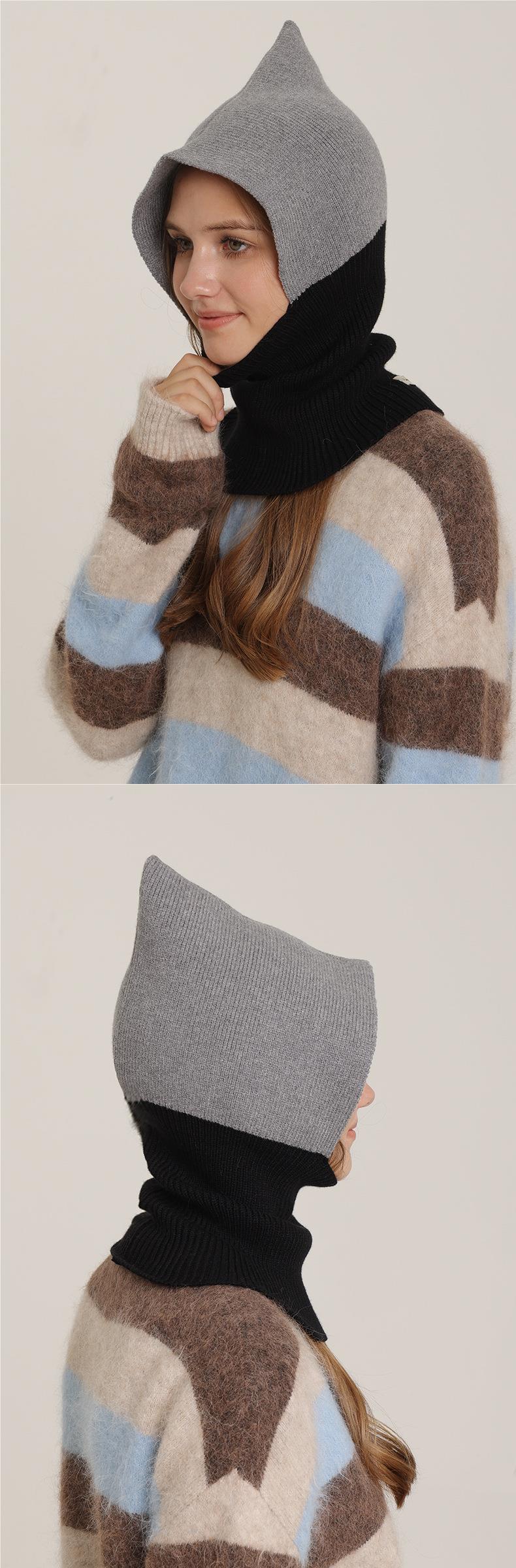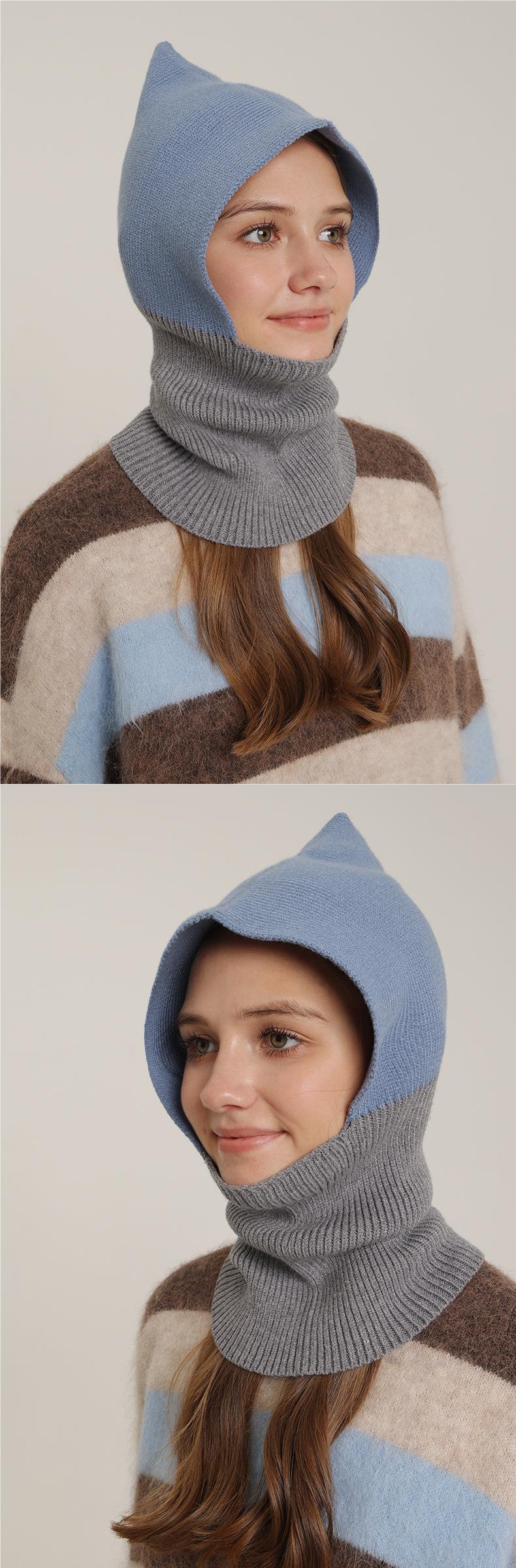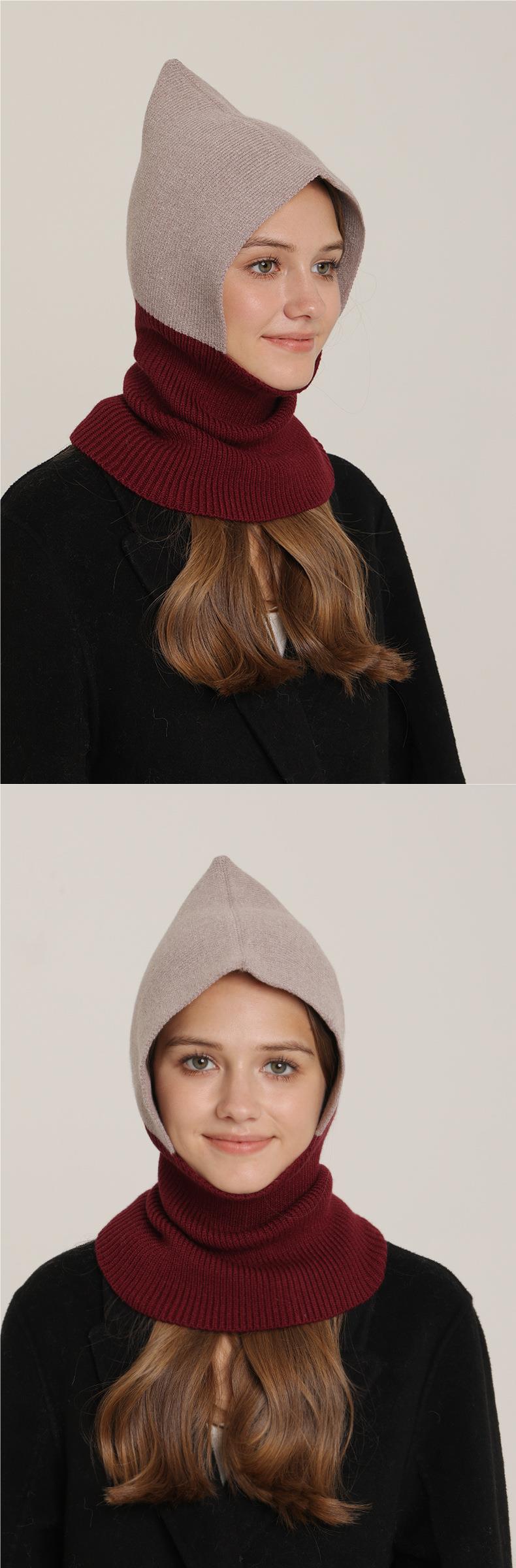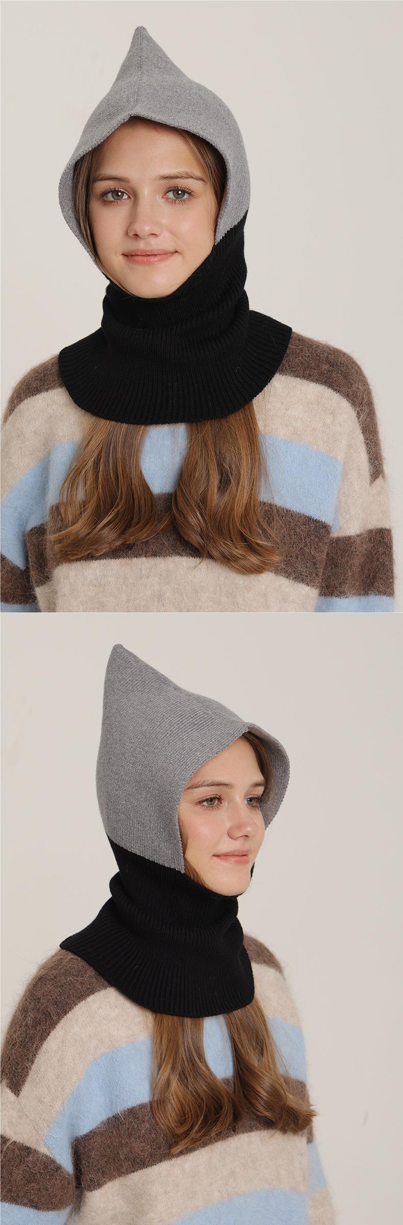 冬季新羊毛加厚针织帽女拼接巴拉克拉法帽加绒保暖毛线帽围脖两用