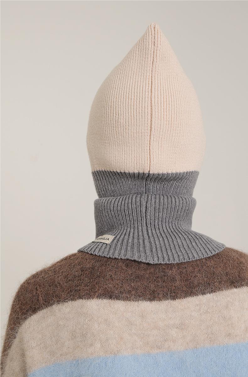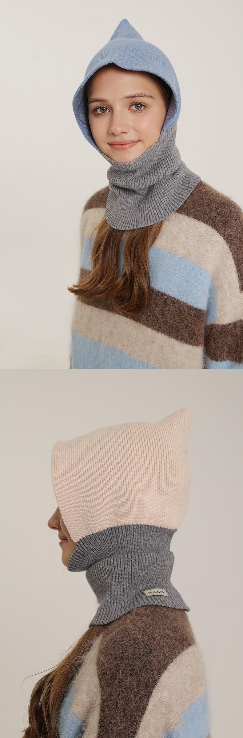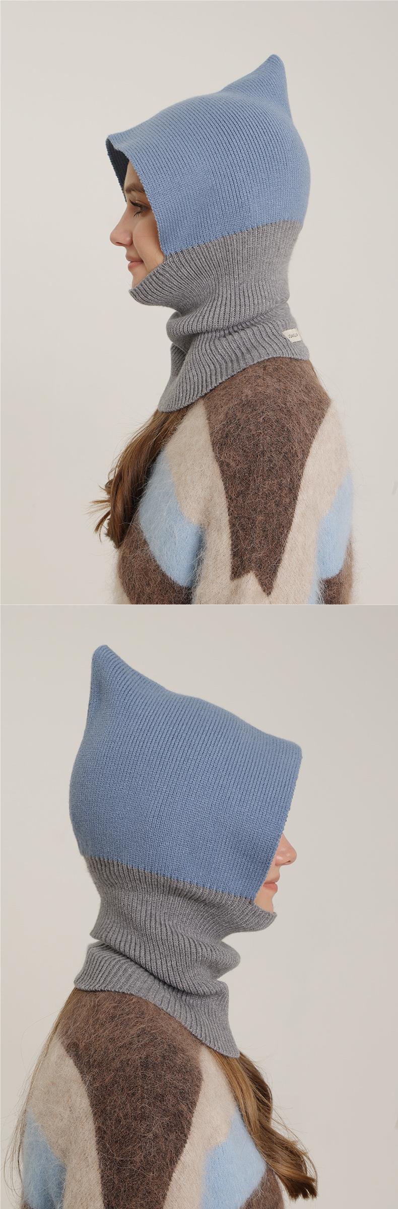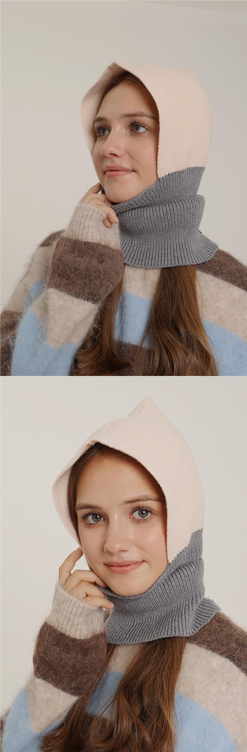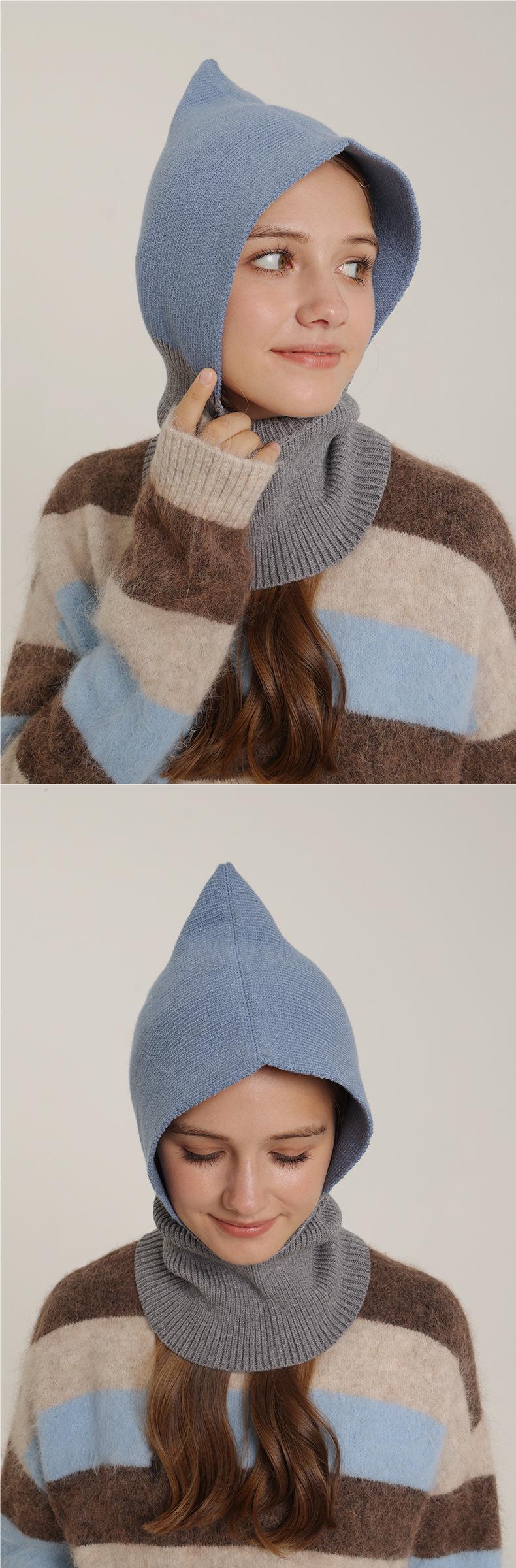 冬季新羊毛加厚针织帽女拼接巴拉克拉法帽加绒保暖毛线帽围脖两用