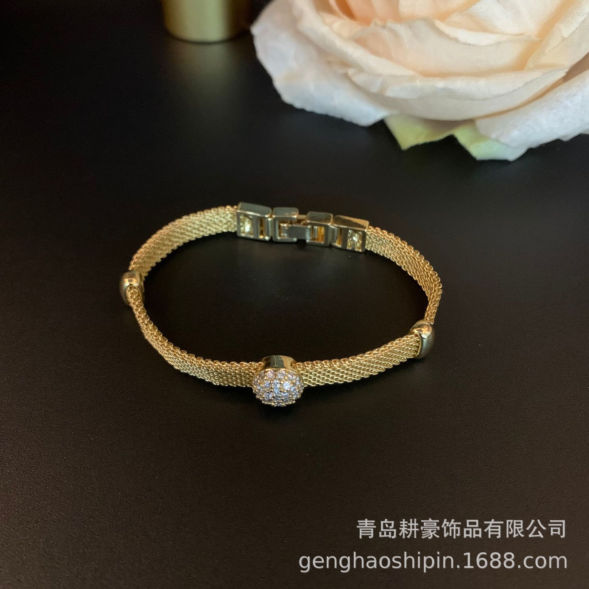 欧米風クロスボーダーファッション、シンプルで上品なハンドジュエリー、中幅チェーン、真鍮にジルコンをあしらった個性的な通勤用ブレスレット