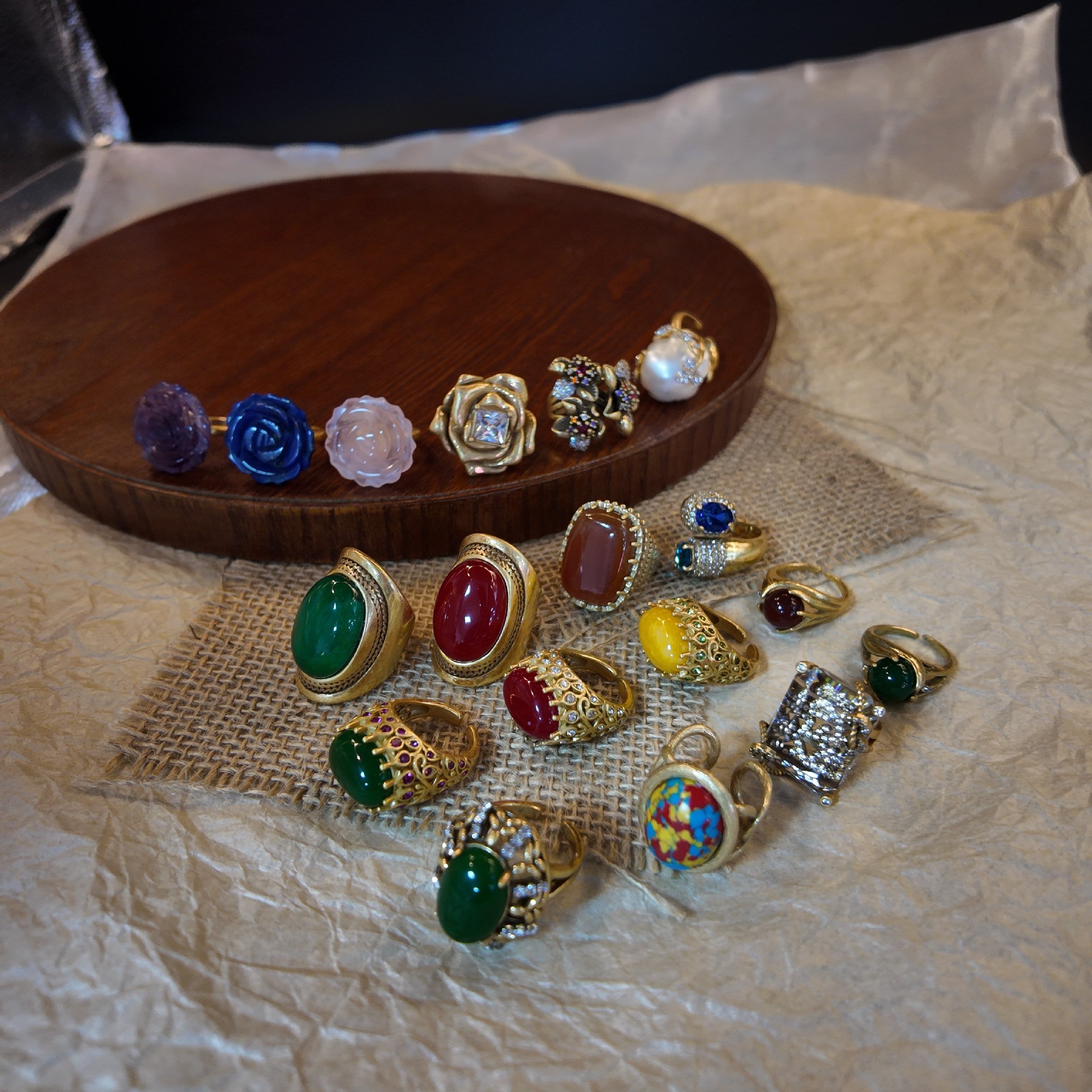中古复古黄铜镶嵌高级感巴洛克珍珠花苞耳钉戒指套装2025高级感批