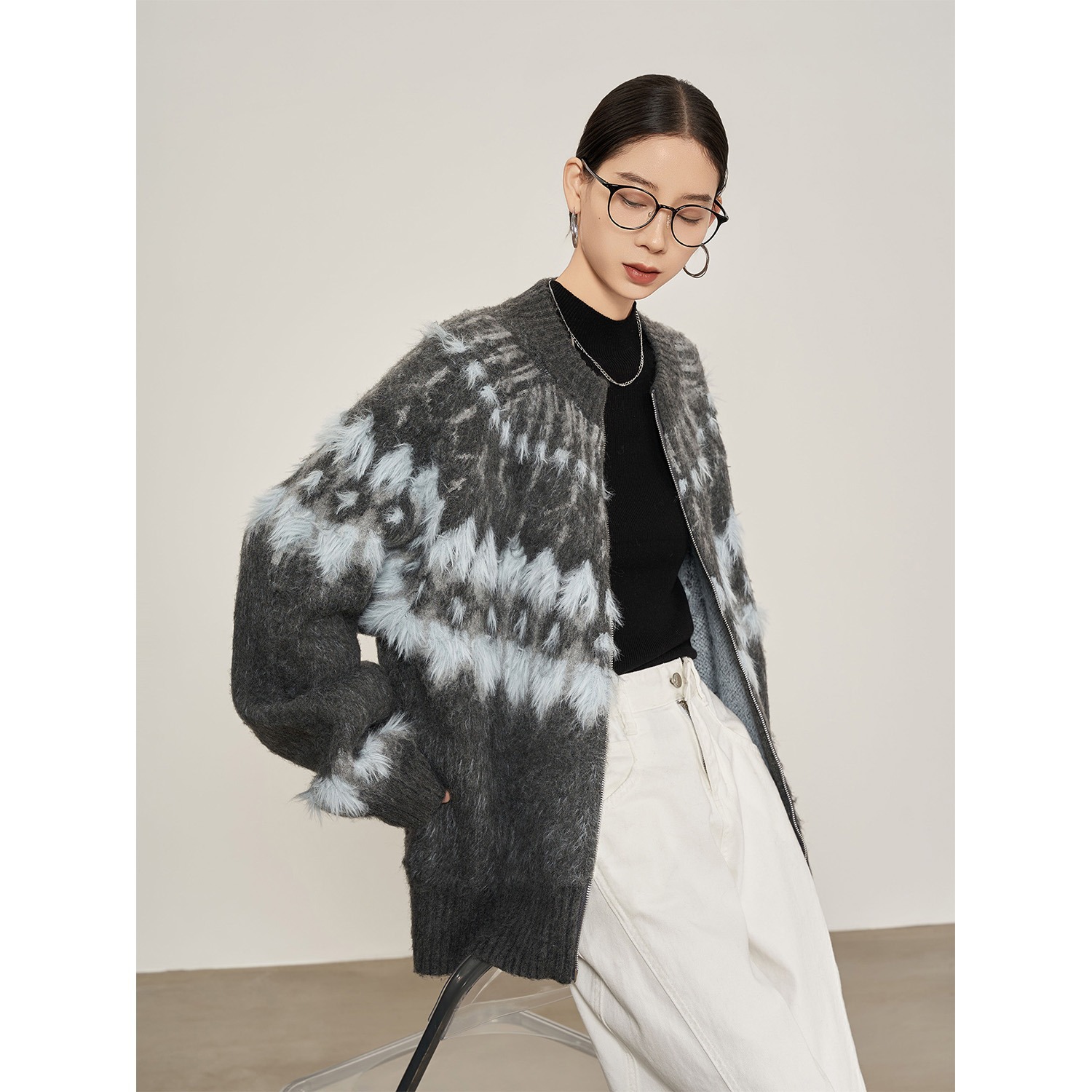 美式复古费尔岛提花拉链针织开衫毛衣外套男女秋冬新款情侣上衣男