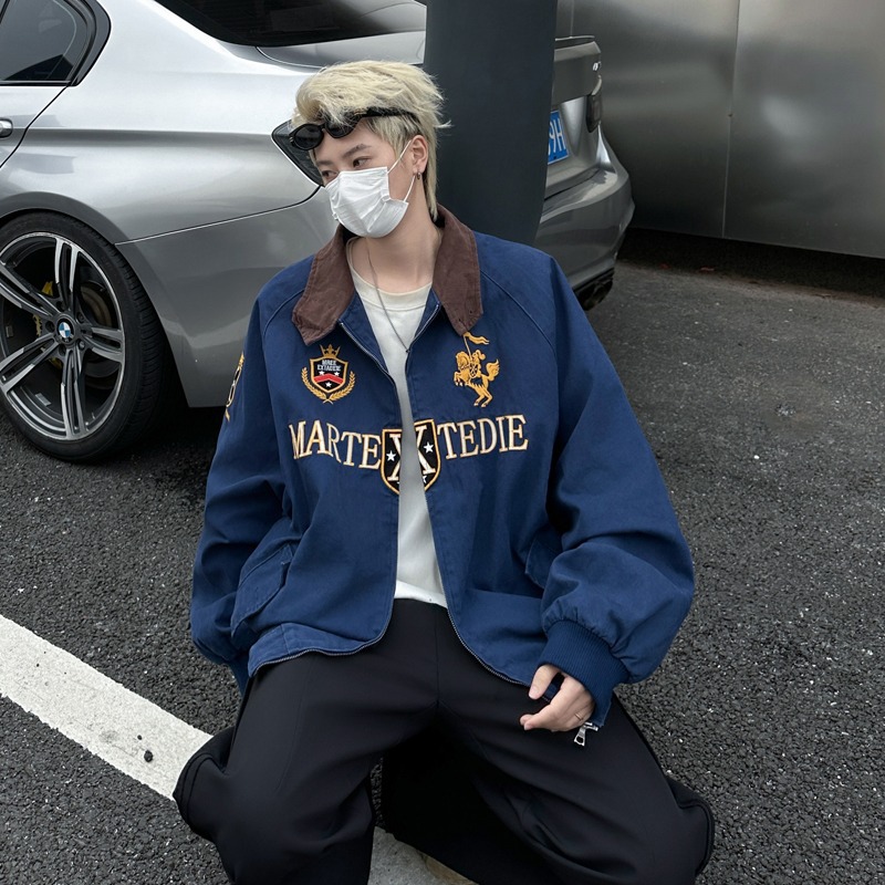 国境を越えたアメリカのレトロで高級感のある街頭秋の紳士服刺繍ジャケット