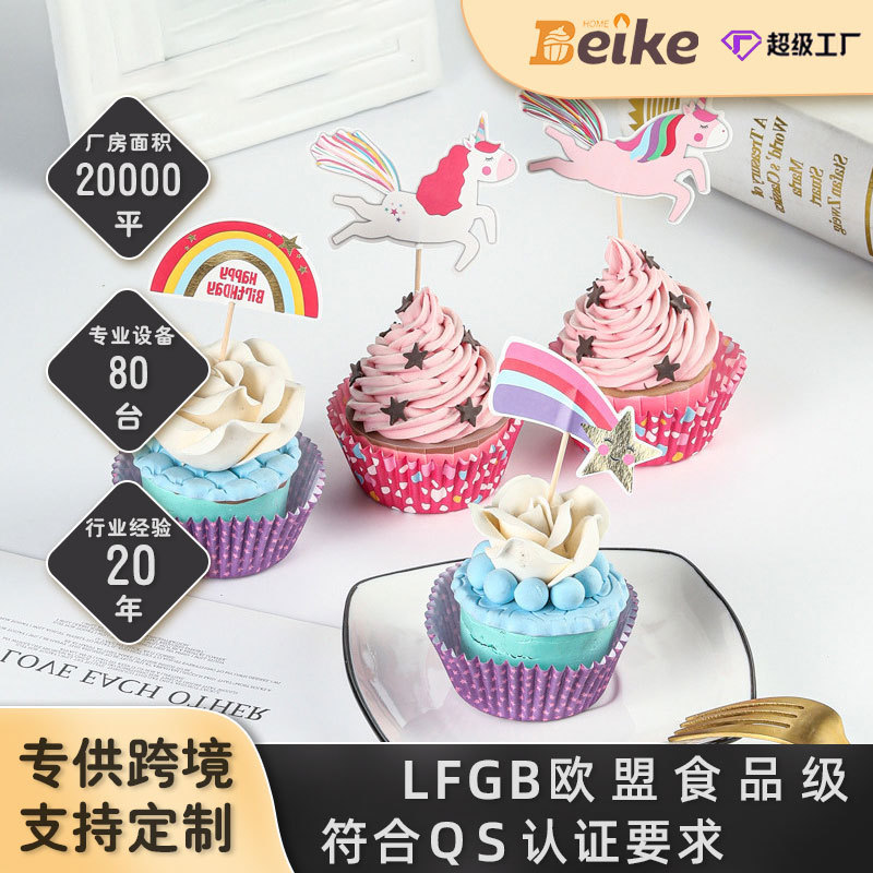 ケーキ紙コップカラーケース24紙トレイ24つまようじセットユニコーンペット犬挿し馬芬杯