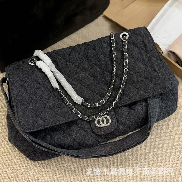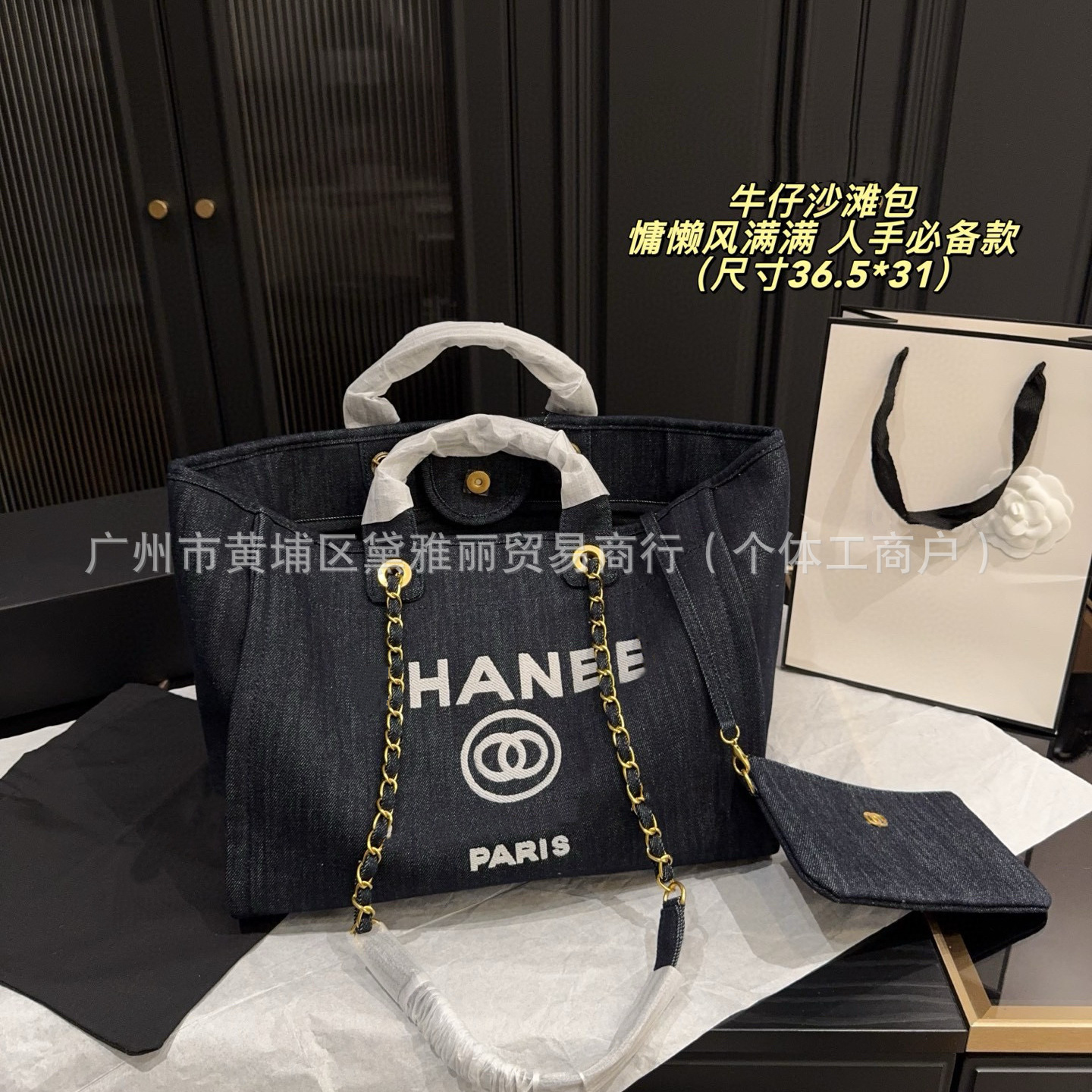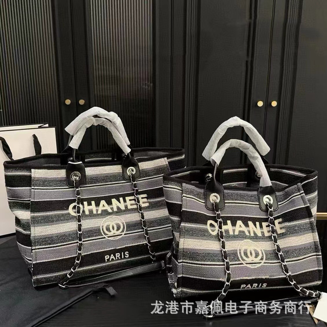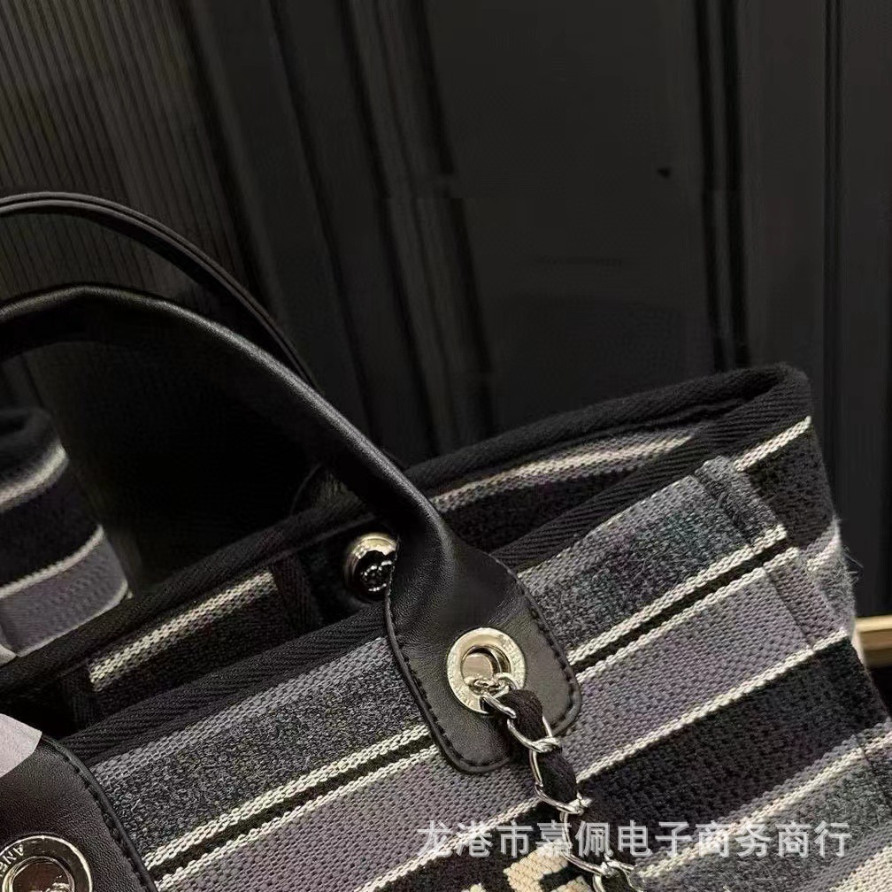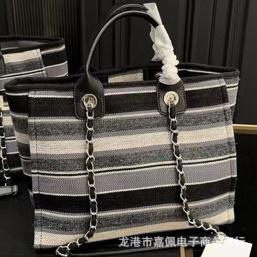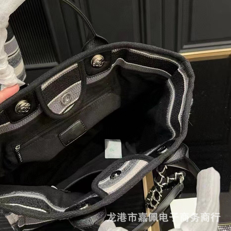跨境高版本高级黑色24c手提帆布沙滩包链条大容量子母包女包