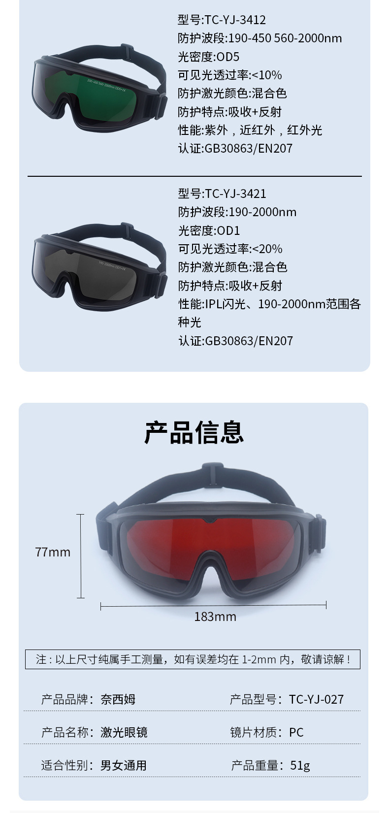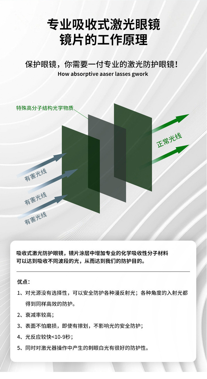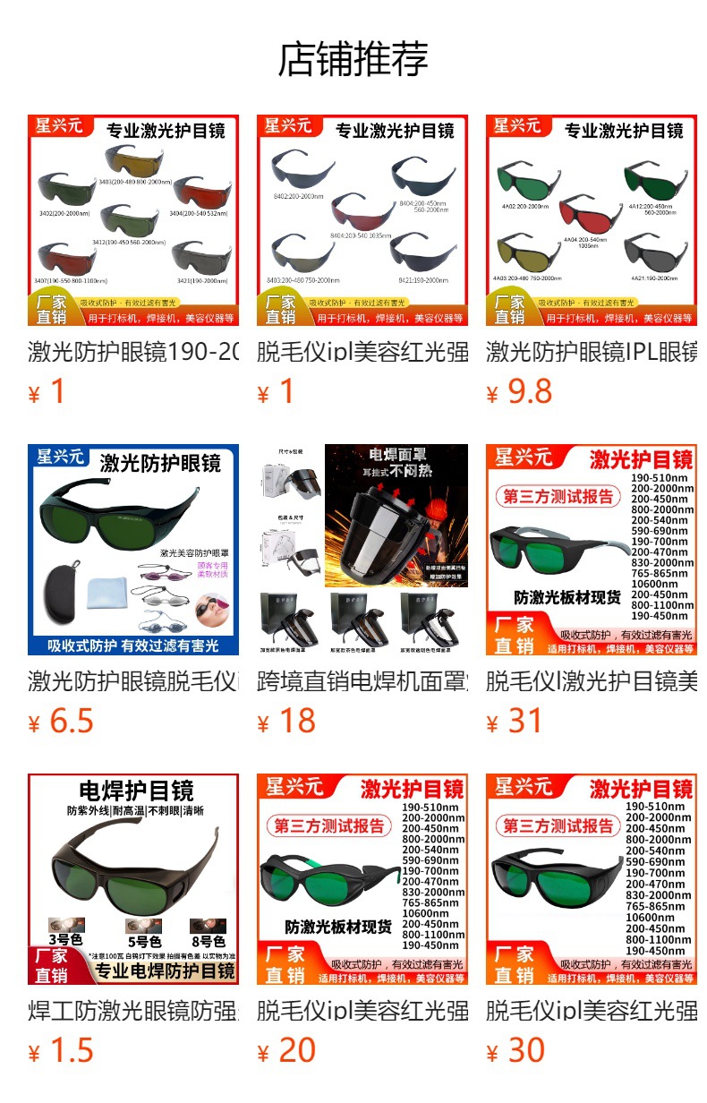 激光防护眼镜光子嫩肤洗眉蓝光紫外光绿光皮秒激光打标焊接护目镜