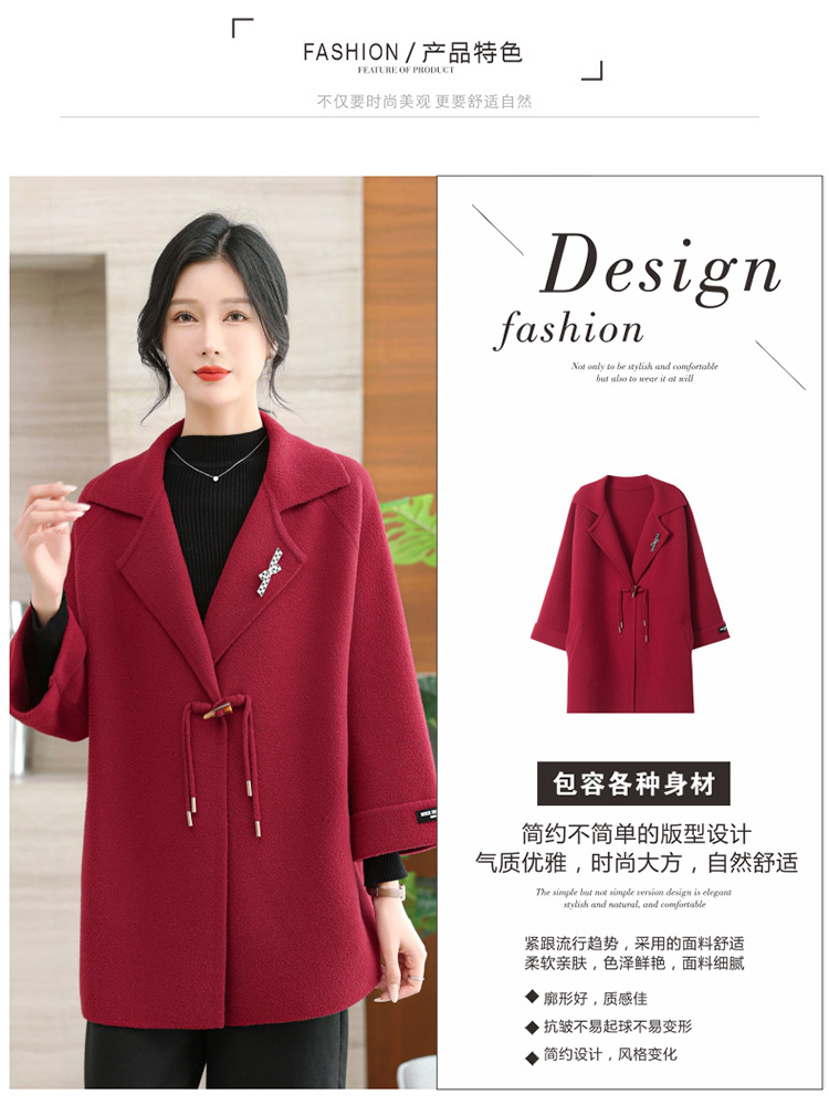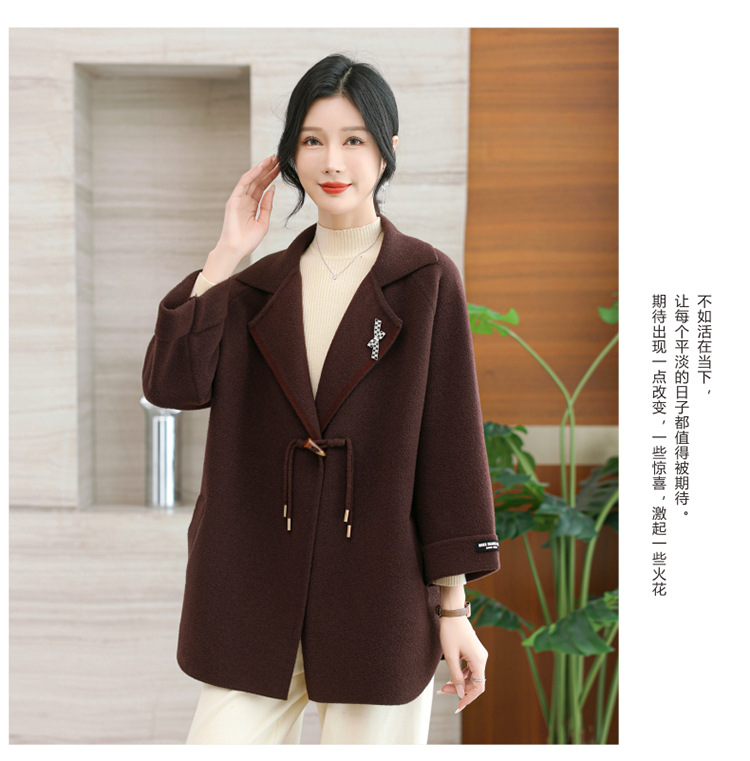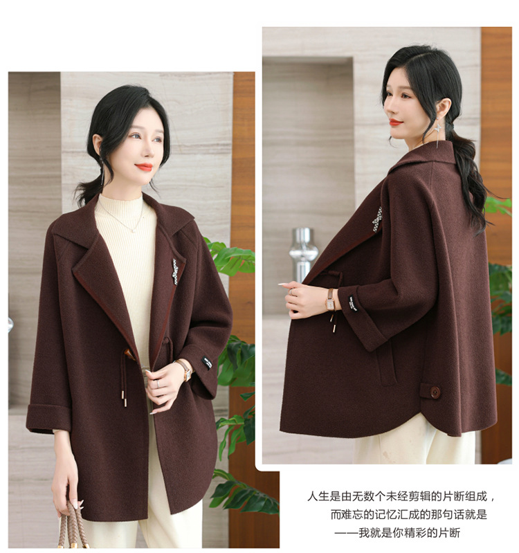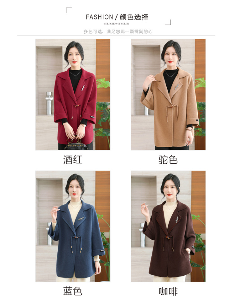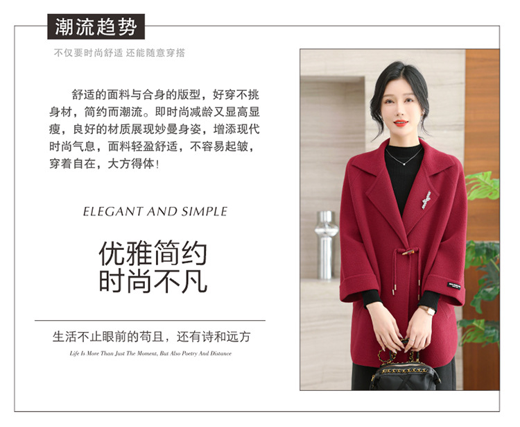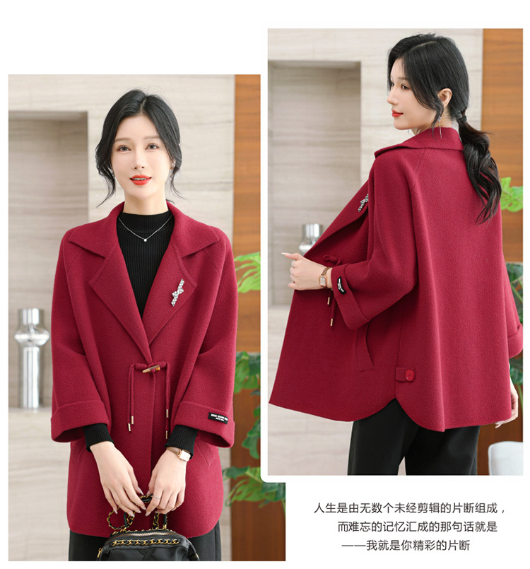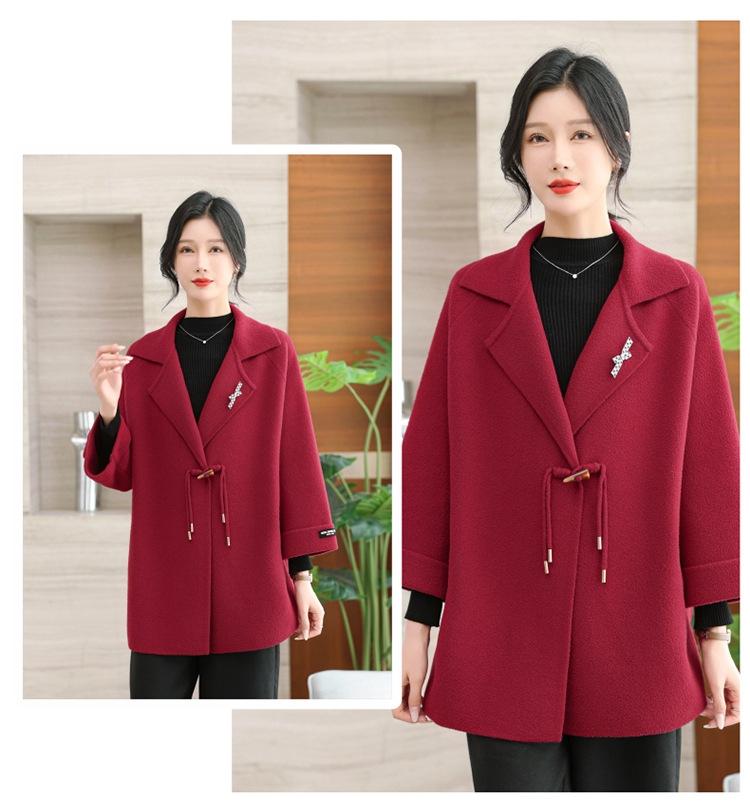 お母さんの秋の服装の気高い両面のカシミヤのコートの女性の2024の新型の秋冬の中高年のファッションのウールのコート
