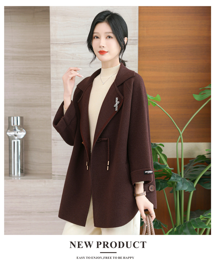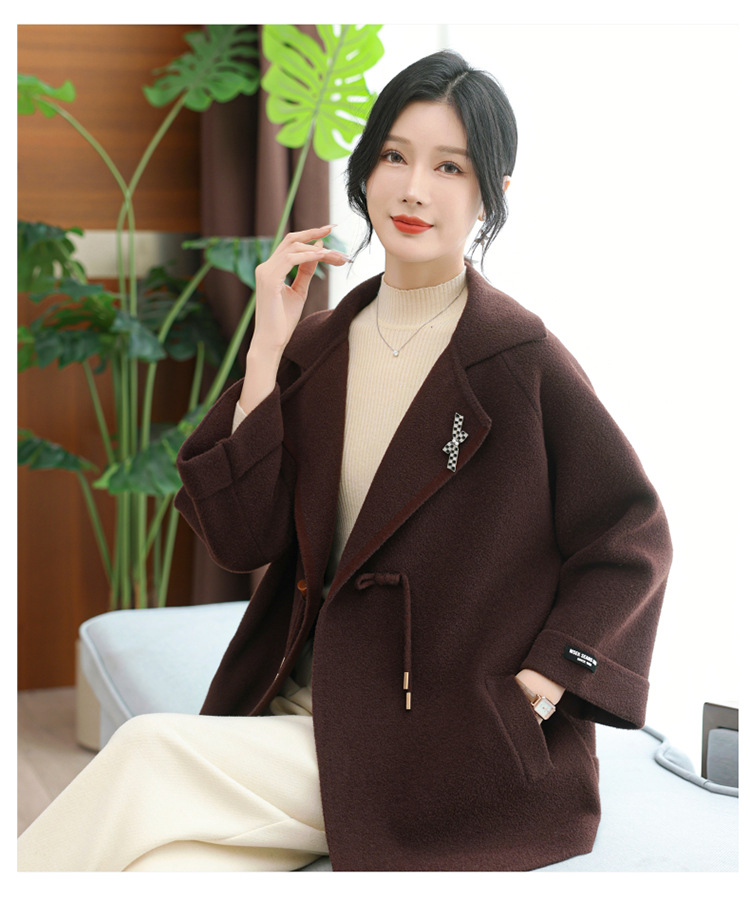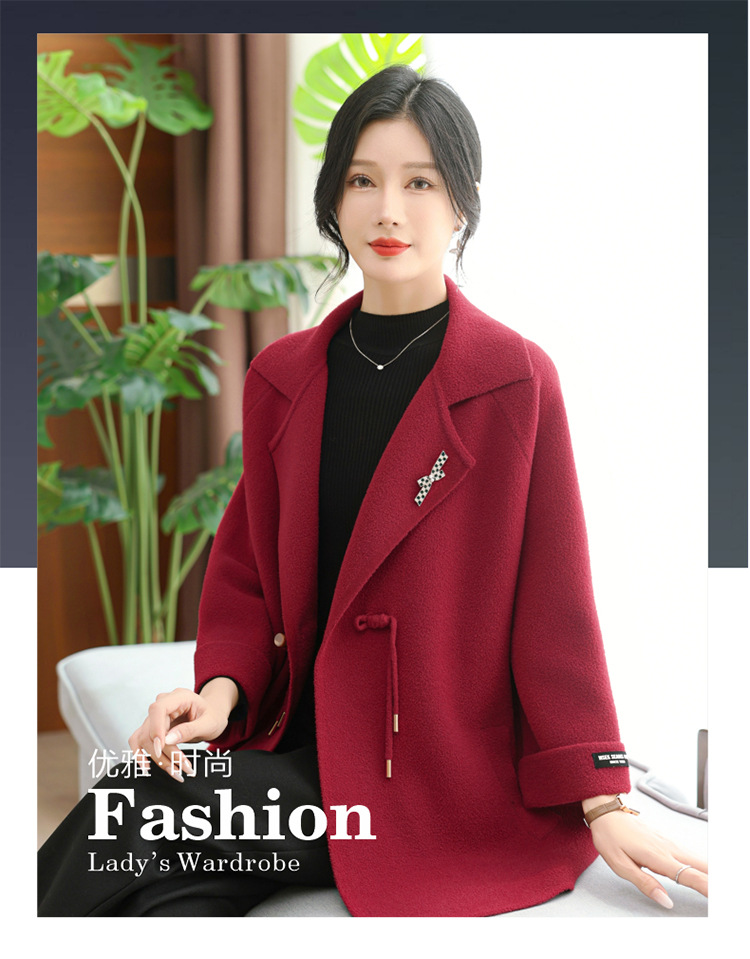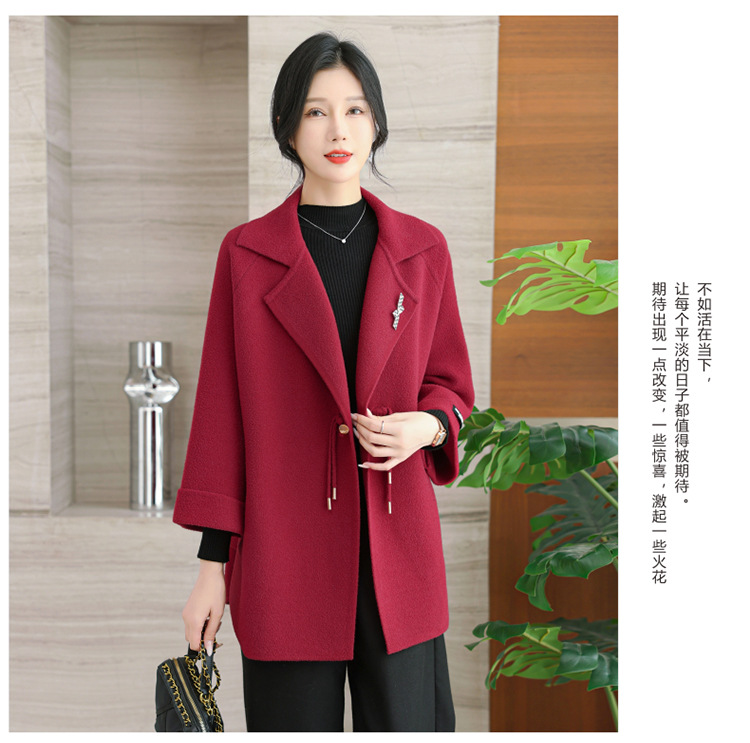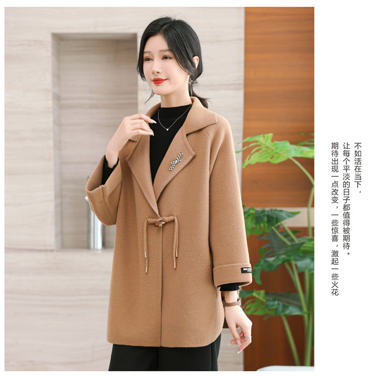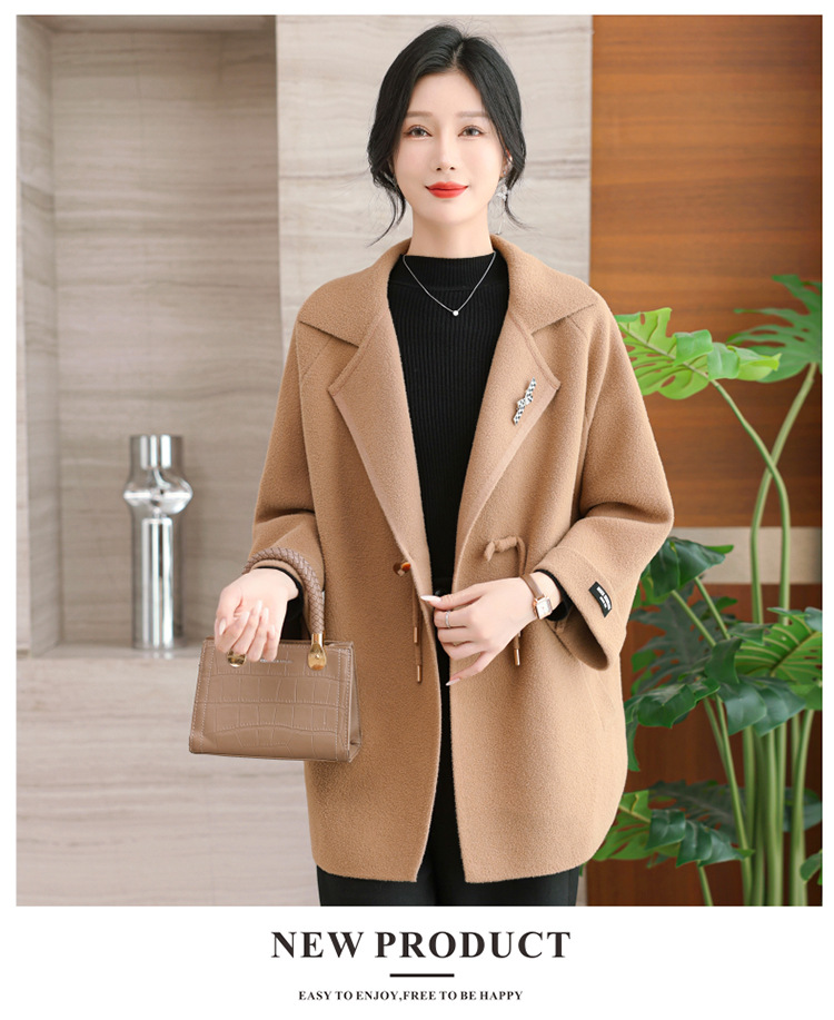 お母さんの秋の服装の気高い両面のカシミヤのコートの女性の2024の新型の秋冬の中高年のファッションのウールのコート