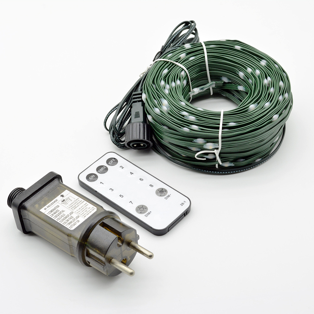 電気リモコンクリスマスツリーの白い線のランプは銅の色のランプをつないで緑に植えます。