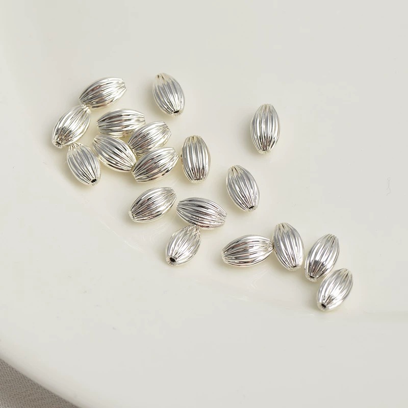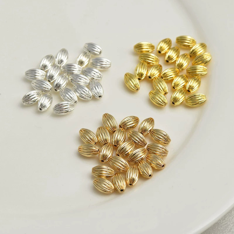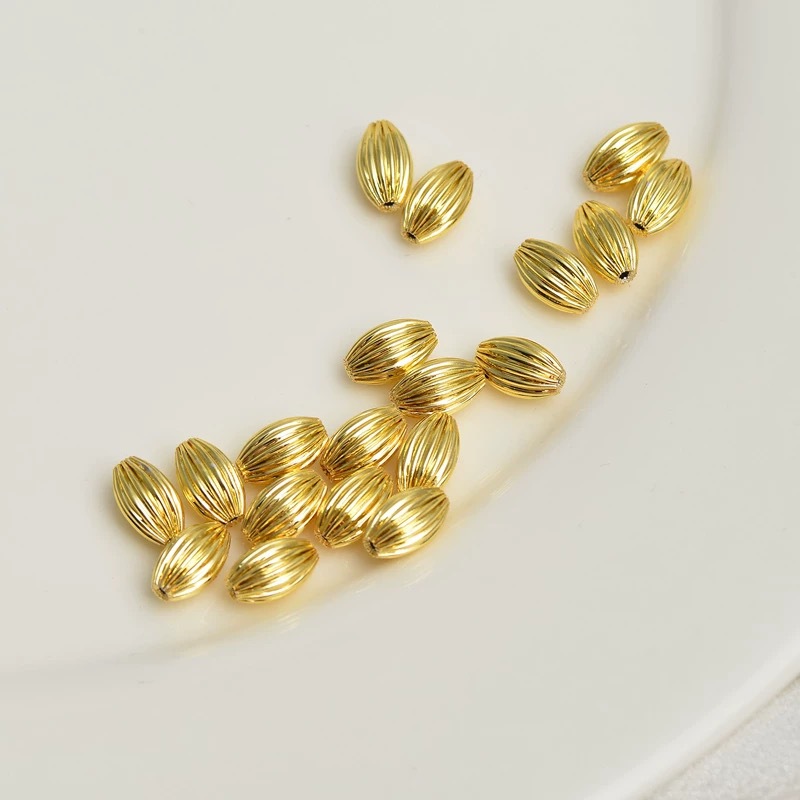 14K金メッキオリーブビーズストライプジュエリー楕円形パンプキンビーズ18K本金スペーサービーズDIYブレスレットルースビーズD60