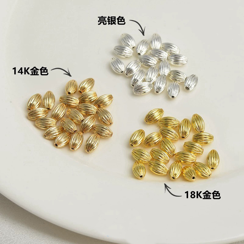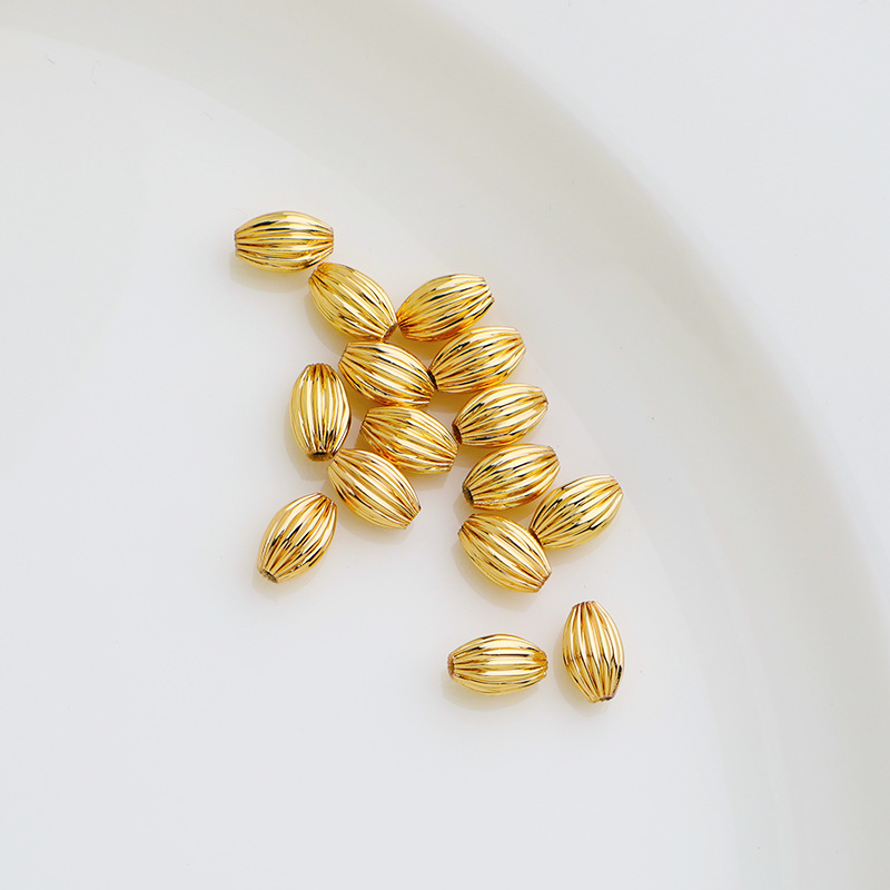 14k金色保色カボチャ紋米珠diy手作りアクセサリーオリーブ珠金色隔珠ビーズ材料