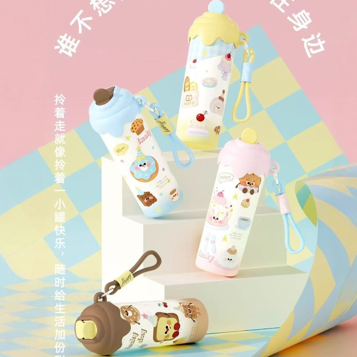 女の子向けのポータブルステンレススチールアイスカップ、見栄えの良いサンリオ断熱カップ、大容量ハンドルカップ、漫画ストローカップ