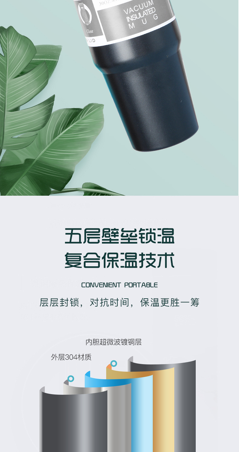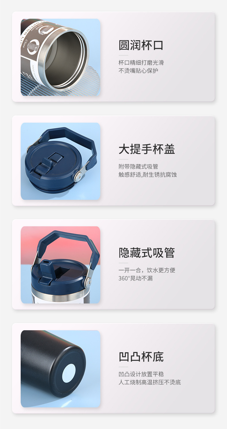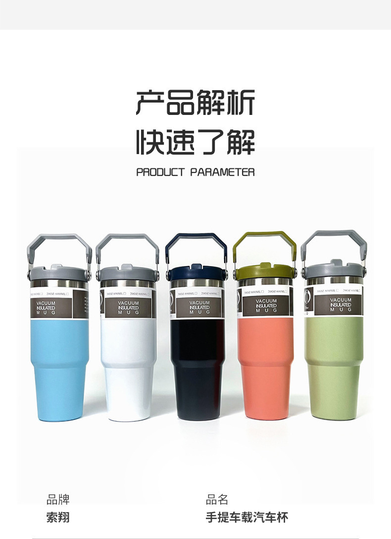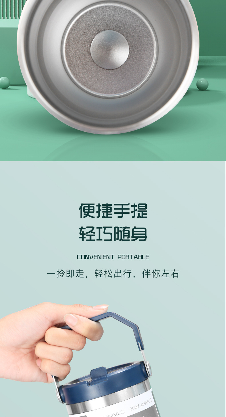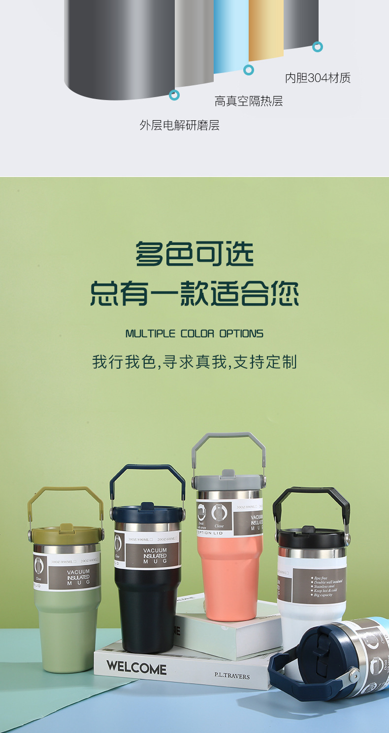 国境を越えた大容量ステンレス保温カップ携帯ロープ携帯自動車カップ創造性高颜値ストロー氷覇カップ