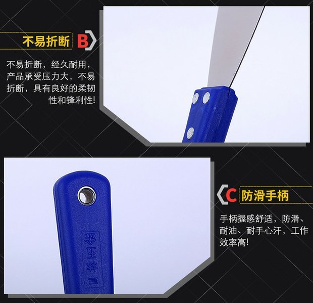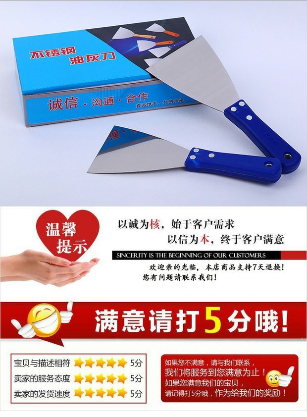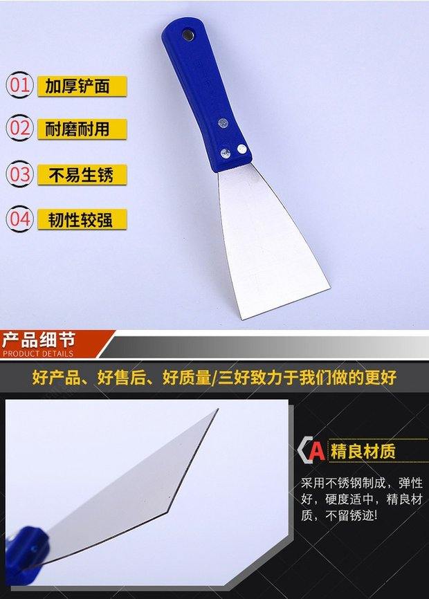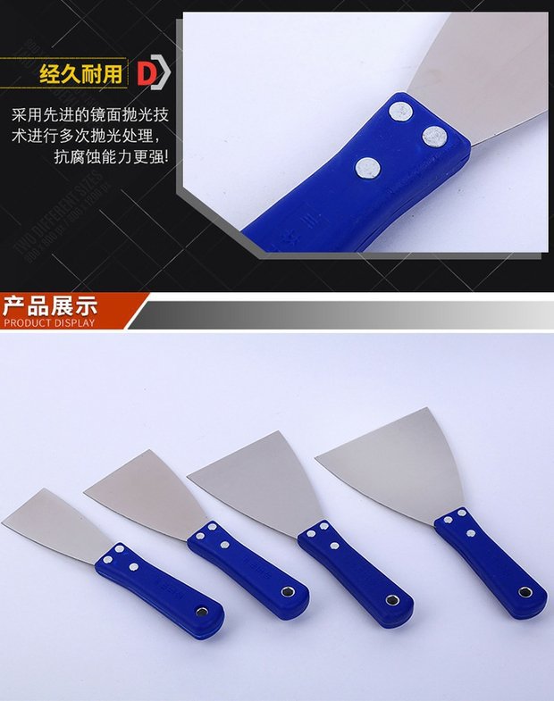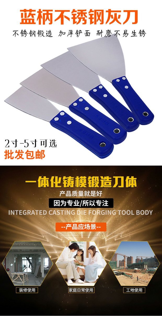ステンレスの青い柄の油灰刀の防錆のすり合わせの泥板の厚い灰のシャベルの雑巾の泥板のパテのスクレーパー