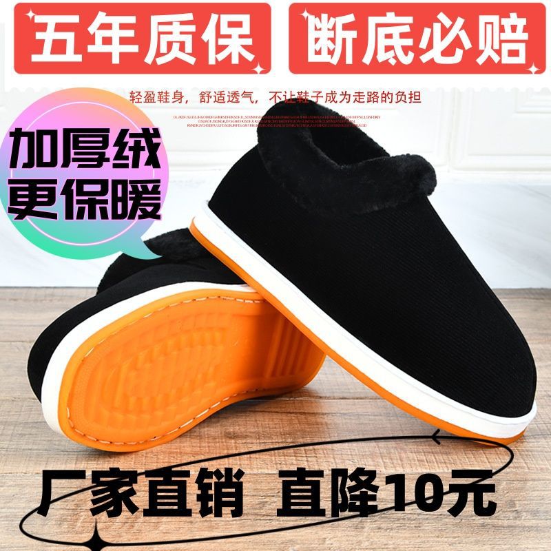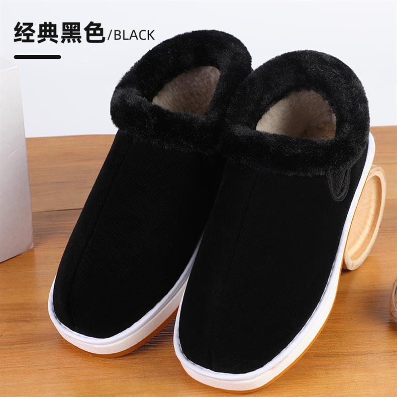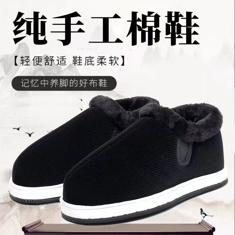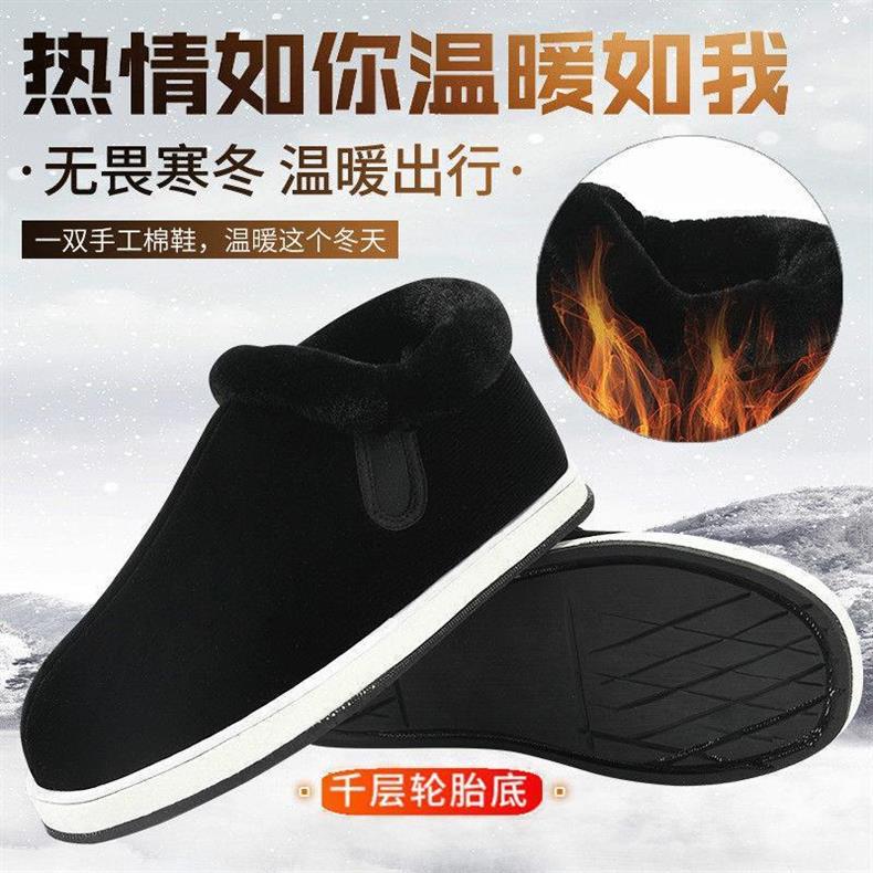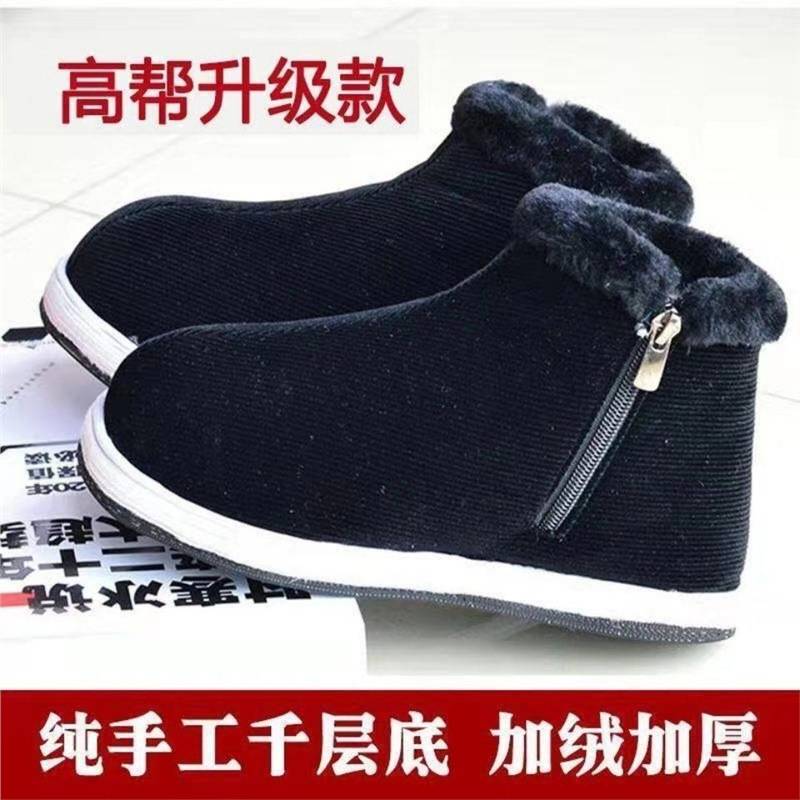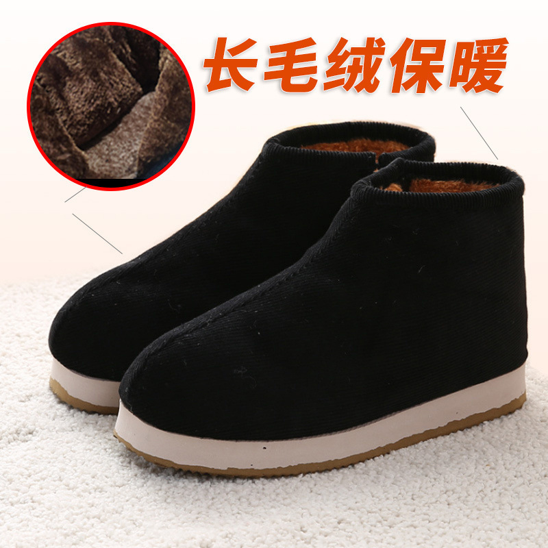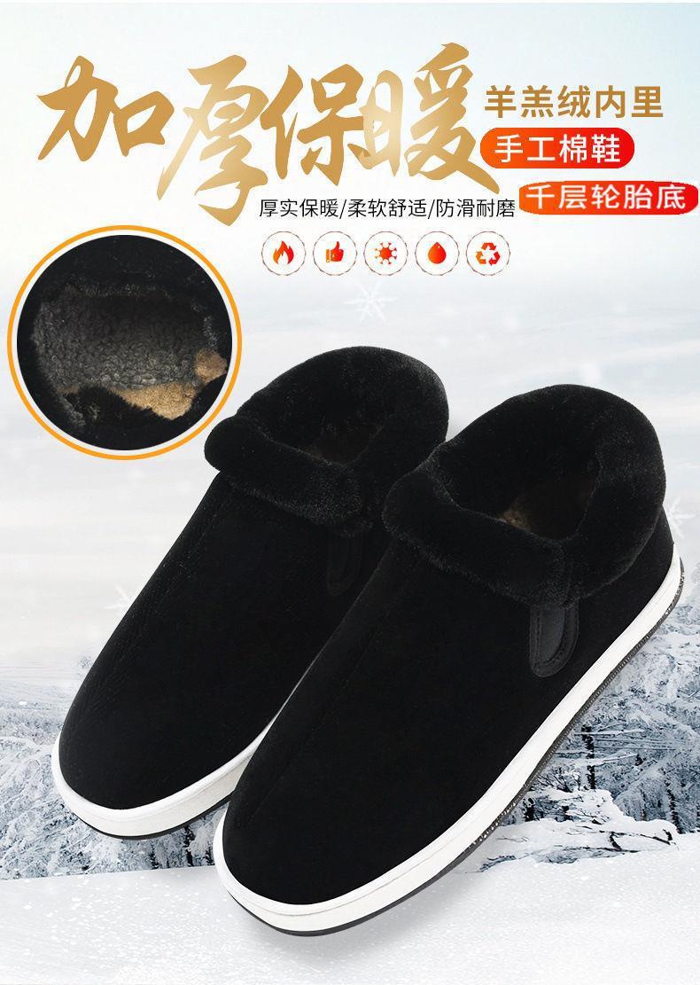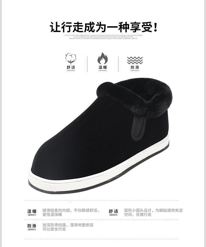 手作りベルベット保温綿靴女千層底保温靴男中高年父綿布靴老年母綿靴