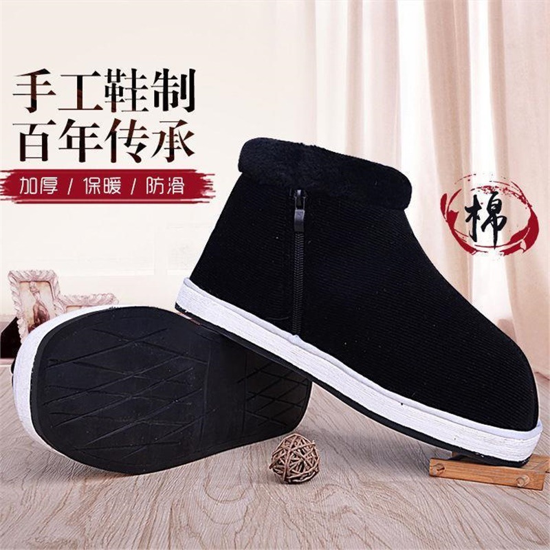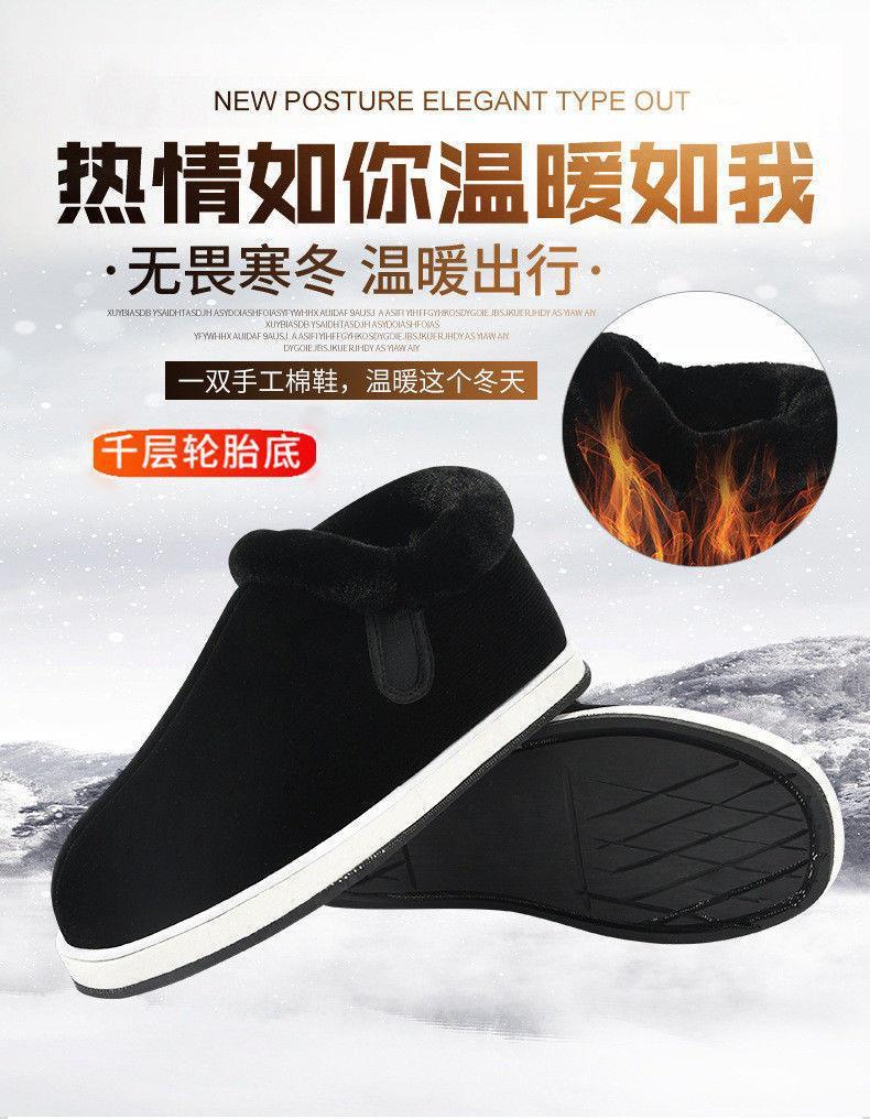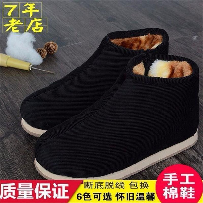 手作り布靴湖南邵陽冬保温ベルベット滑り止め中高年靴千層底父在宅綿靴男