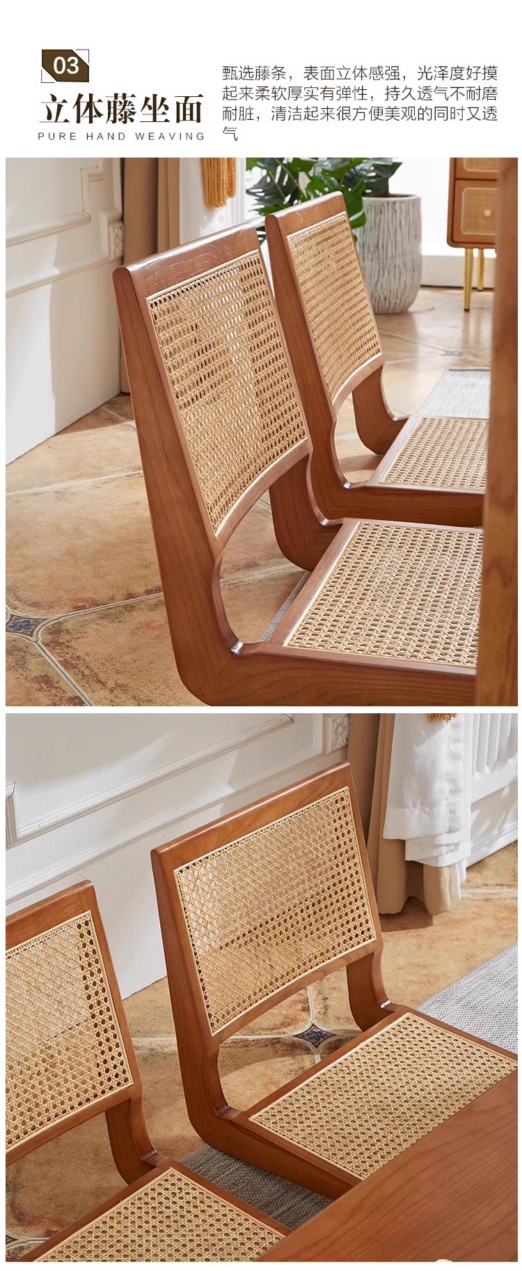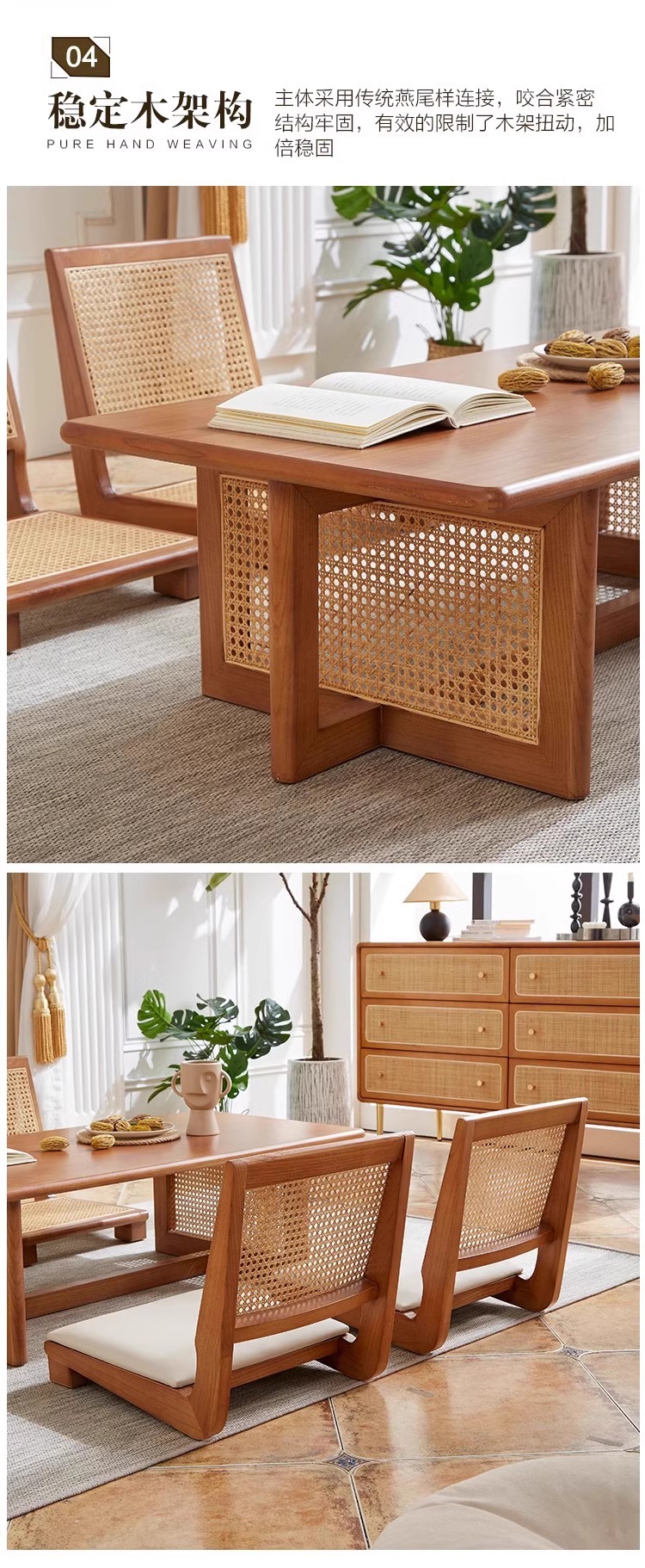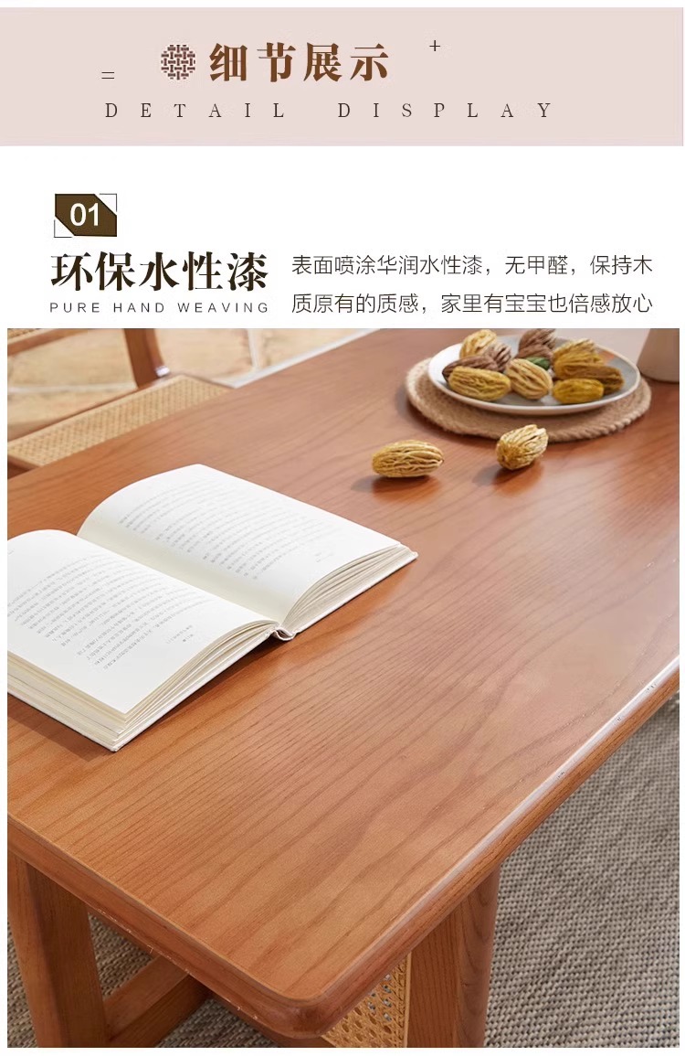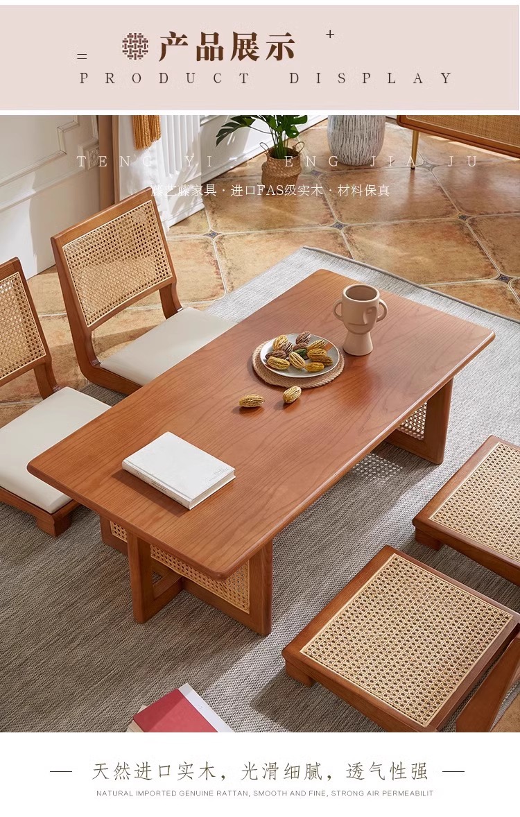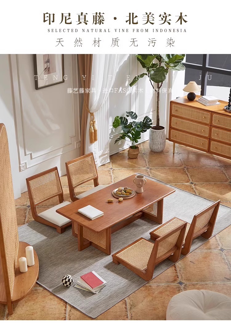 日本式食卓白蝋木藤編テーブルと椅子の組み合わせレトロでシンプルなベンチ椅子胡桃色の実木テーブル
