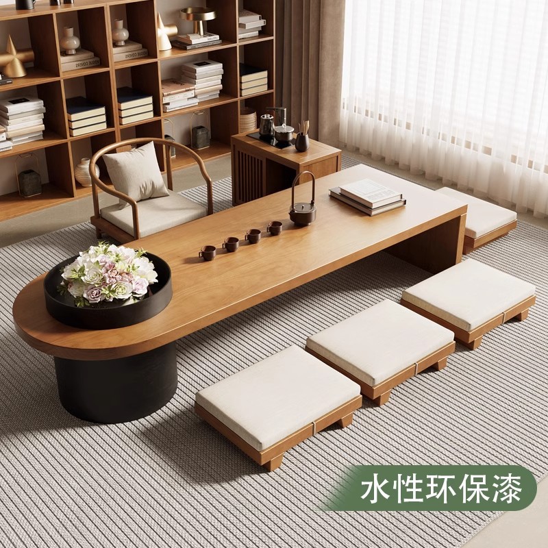 日本式の畳のお茶のいくつかの実木の禅の意のお茶のいくつかの窓の新しい中国式の座っているお茶のテーブルの多くの人の低いテーブルと椅子の組み合わせ
