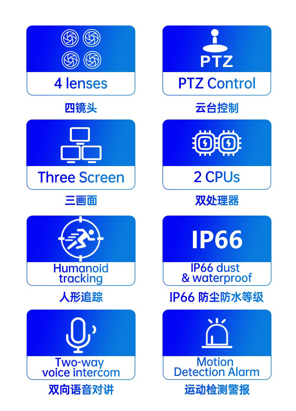 太阳能监控摄像头公司户外全景无死角无线室外多目监控AOV摄像机
