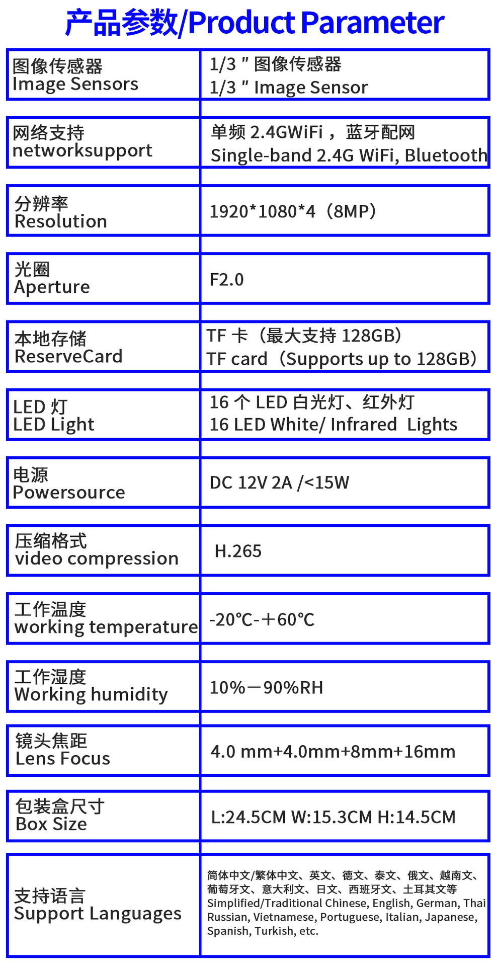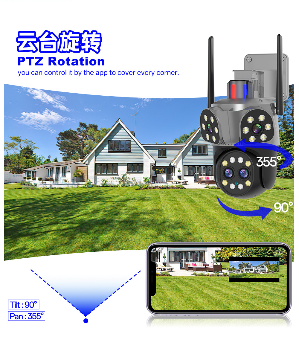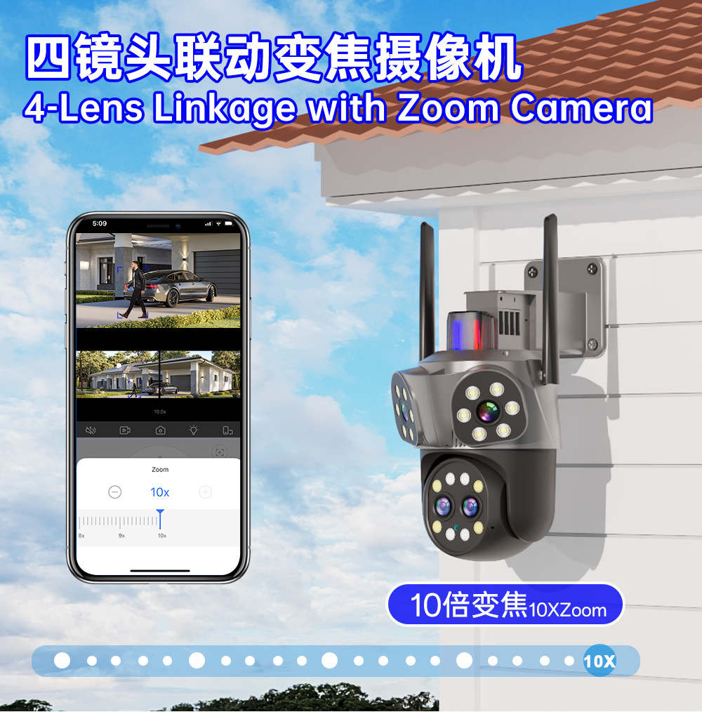 800万三画面監視カメラhd夜視遠隔知能10倍ズームWiFiモニタークロスボーダー
