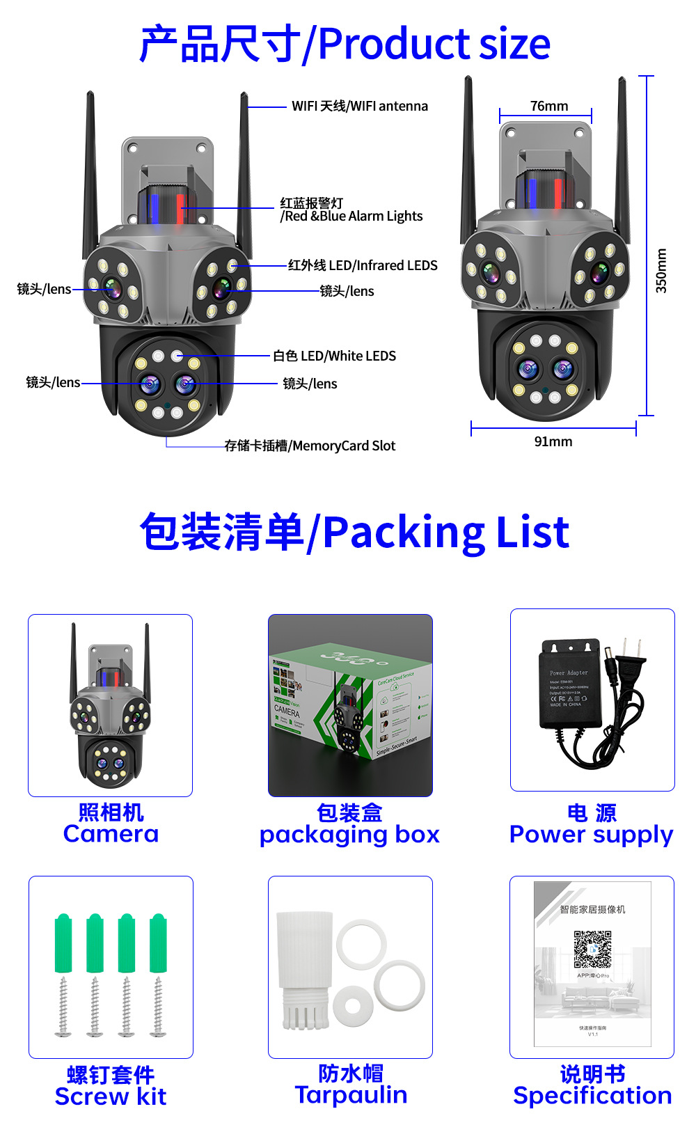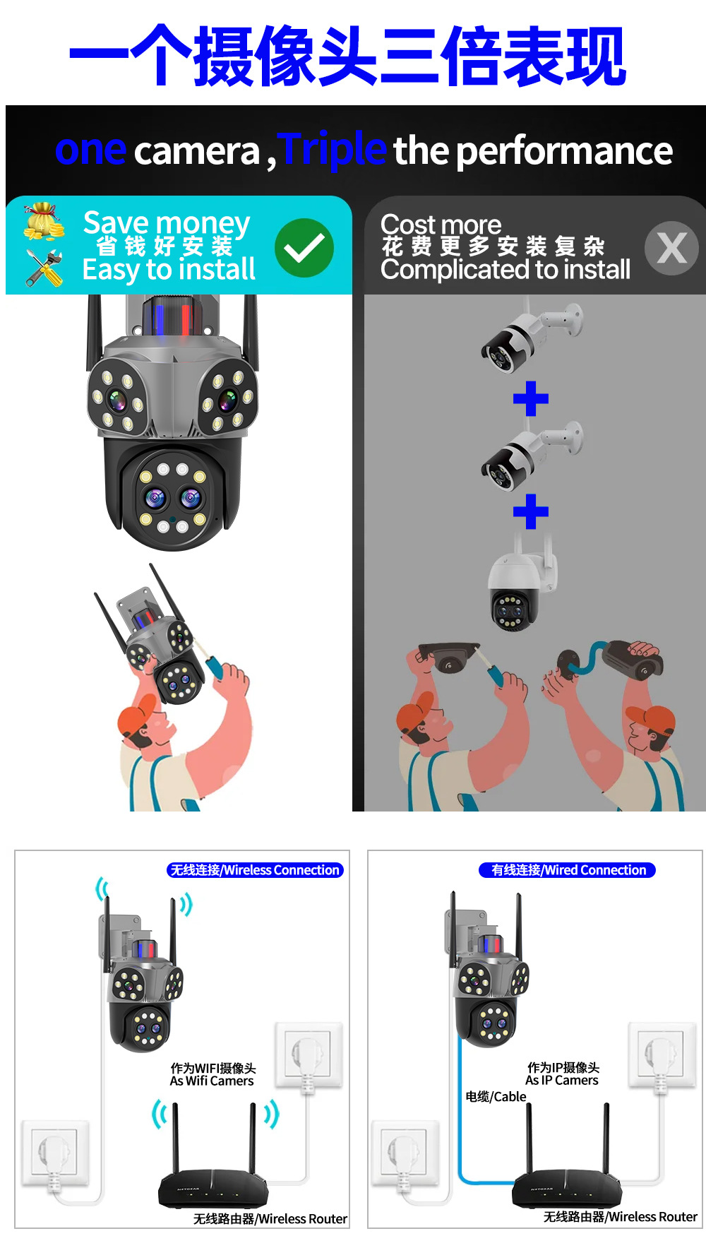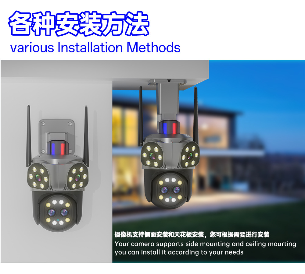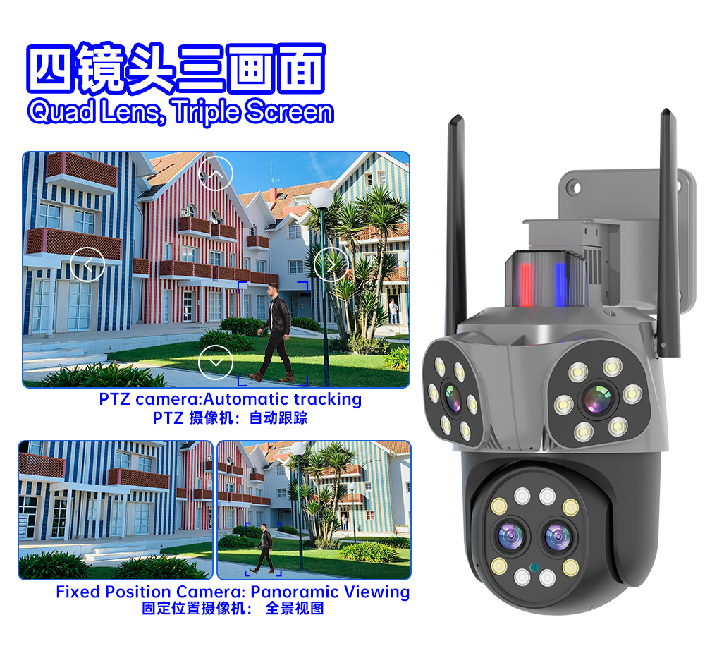 室外家用V380高清摄像机远程语音对讲全彩夜视4G监控摄像头三画面