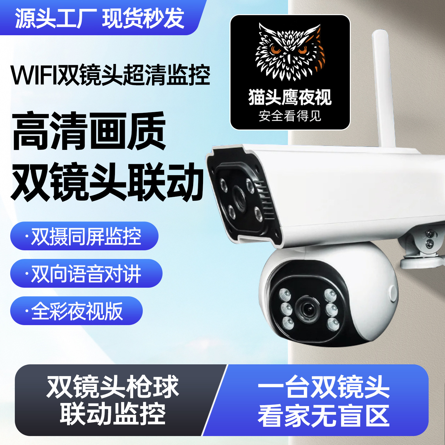 クロスボーダー爆金ハイビジョンモニタースマート無線wifi家庭用遠隔夜間監視カメラ機デュアル画面
