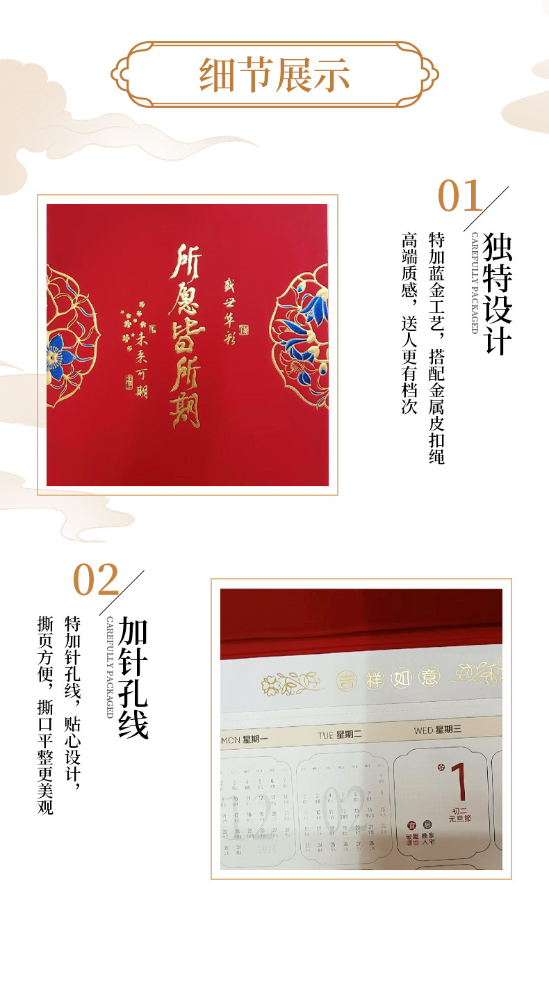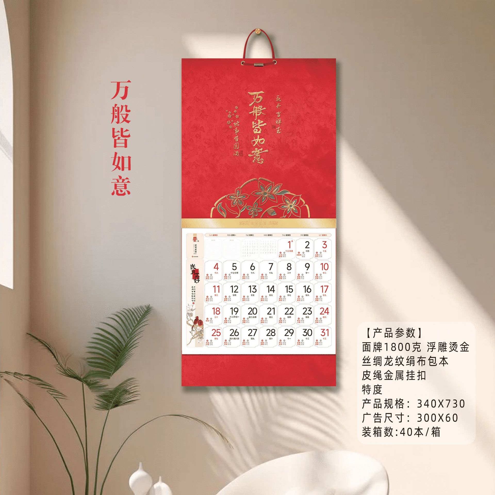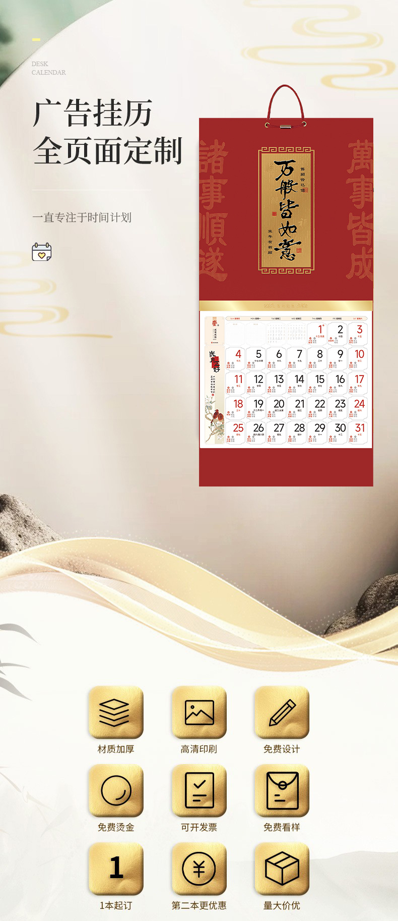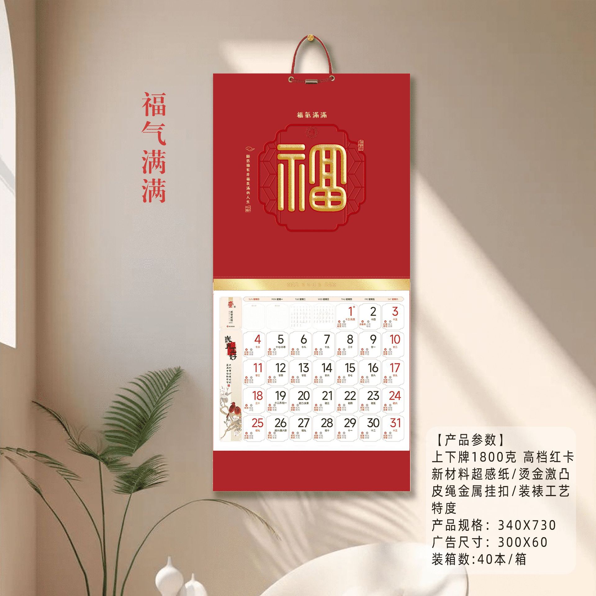 2025蛇年カレンダー福字新春掛け軸企業印刷国潮吊牌黄暦万年暦広告印刷