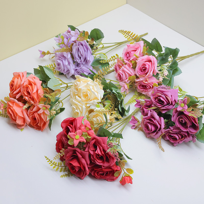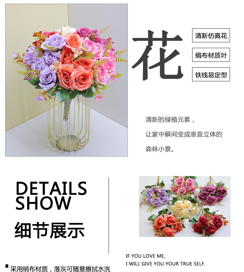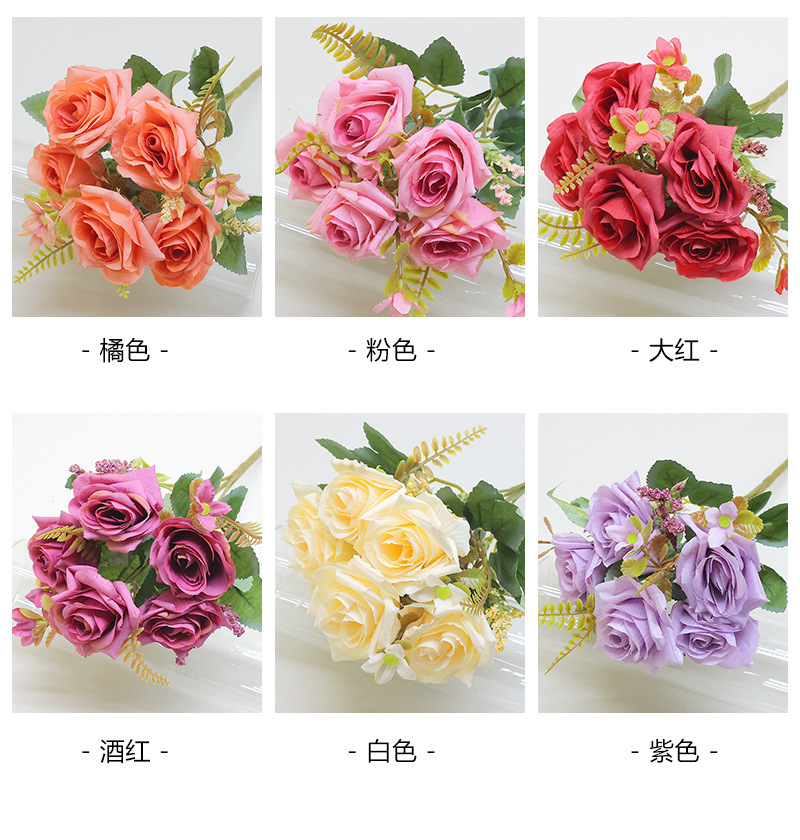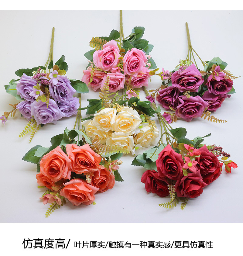 バラのシミュレーションの花は9頭のアンナのバラの結婚式の手をつないで花の装飾の偽の花の絹の花の対外貿易の卸売りを持ちます。