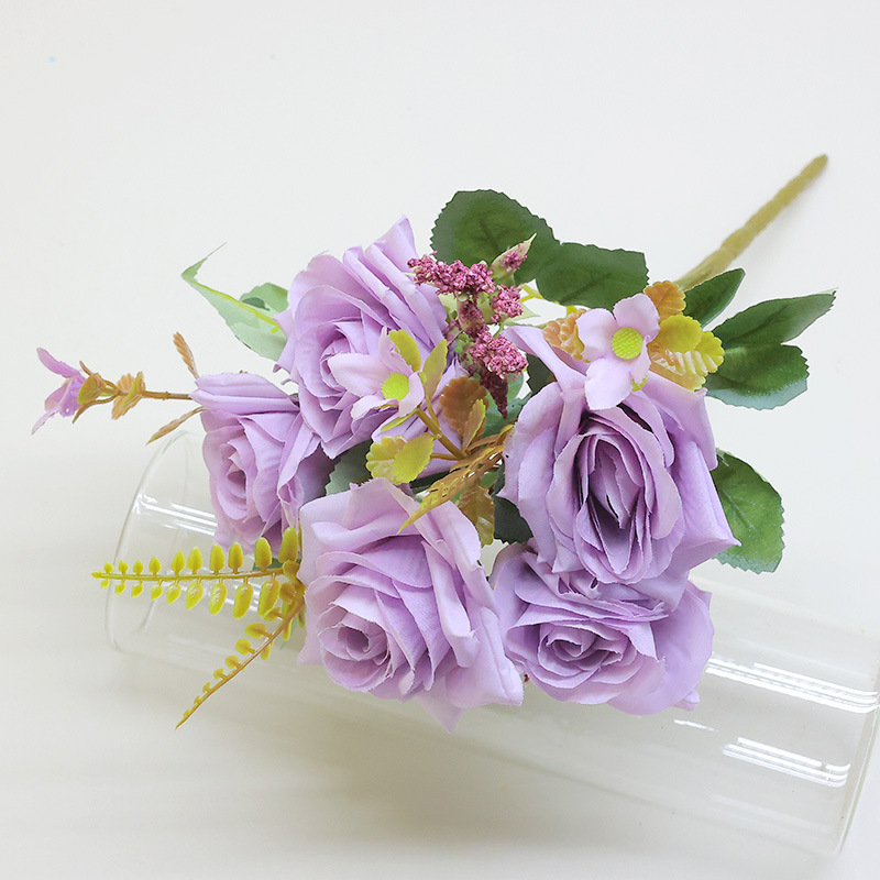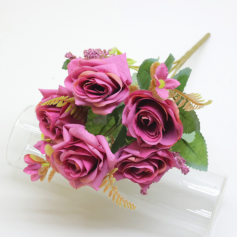 シミュレーション9頭角薔薇束9頭のバラの結婚祝いの生け花を手にして花の造花を飾って対外貿易を飾る