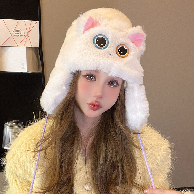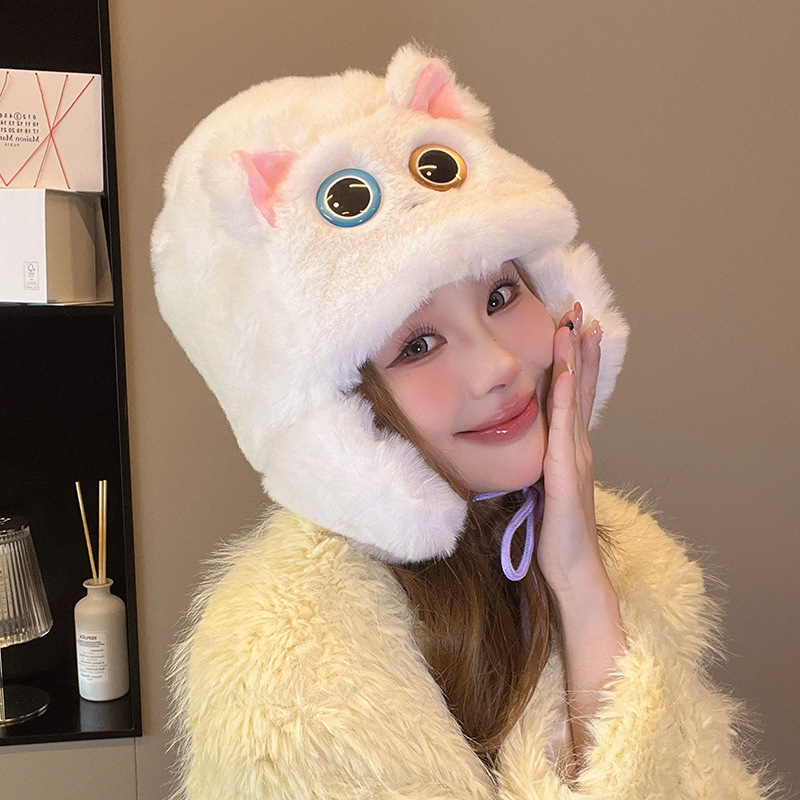 日本のかわいい大きな目の猫の頭の帽子の子供は秋冬に厚くて保温します。