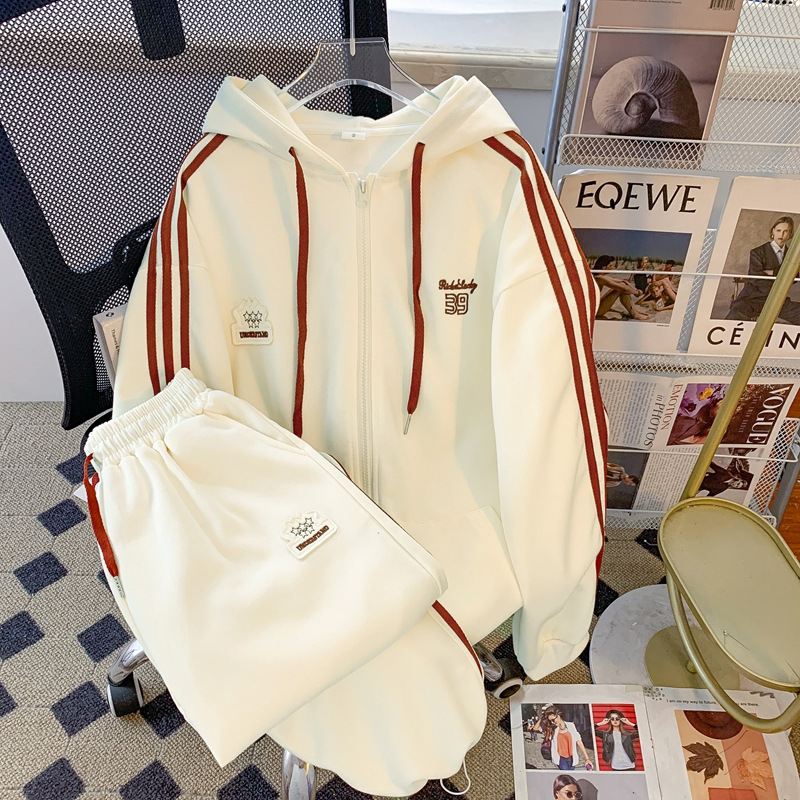 韩国东大门秋冬休闲运动服套装女时尚百搭连帽开衫卫衣减龄两件套
