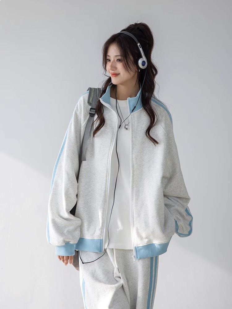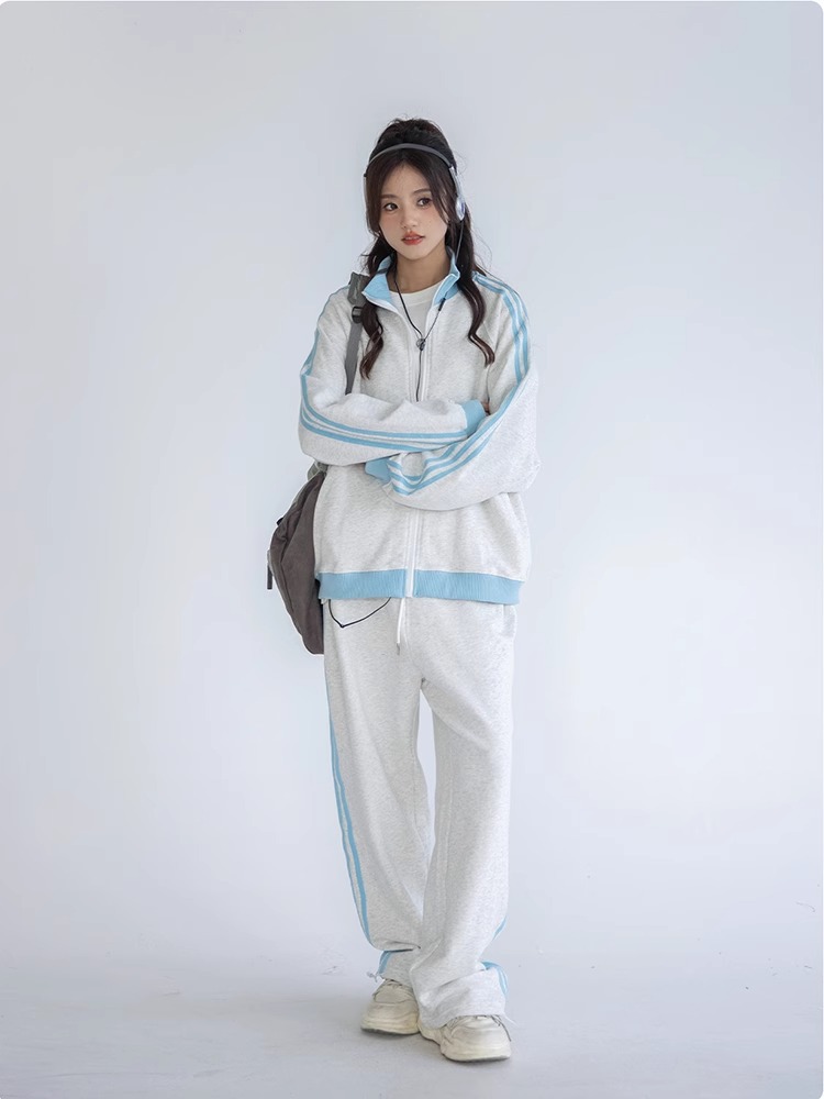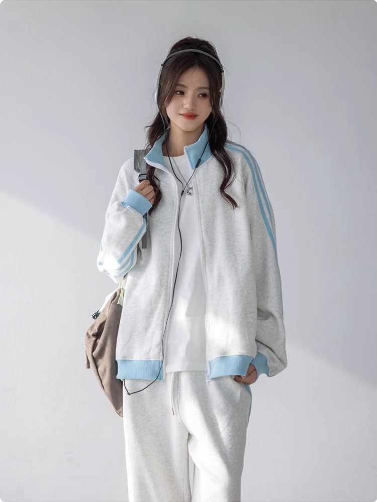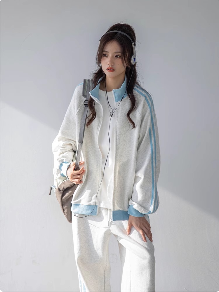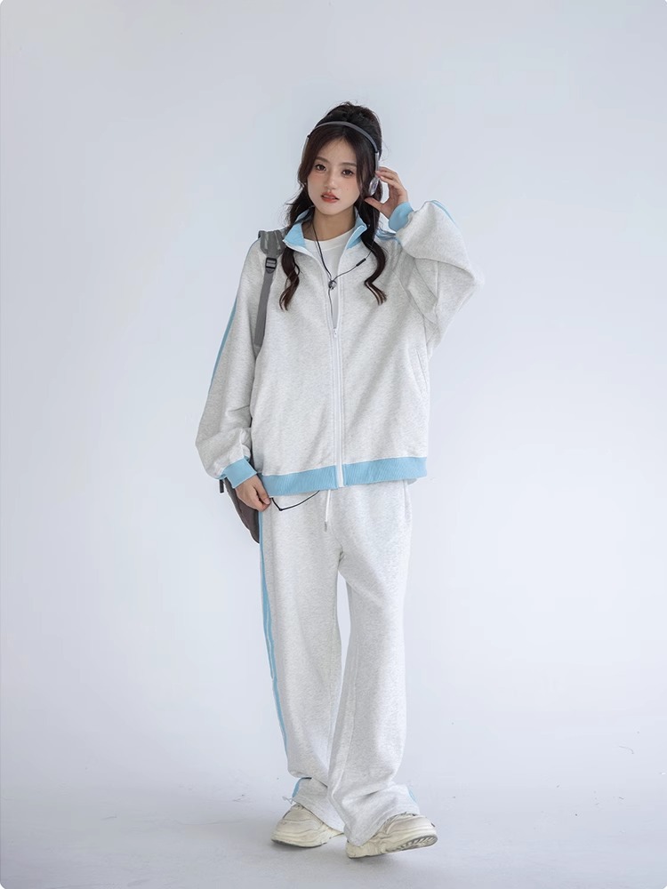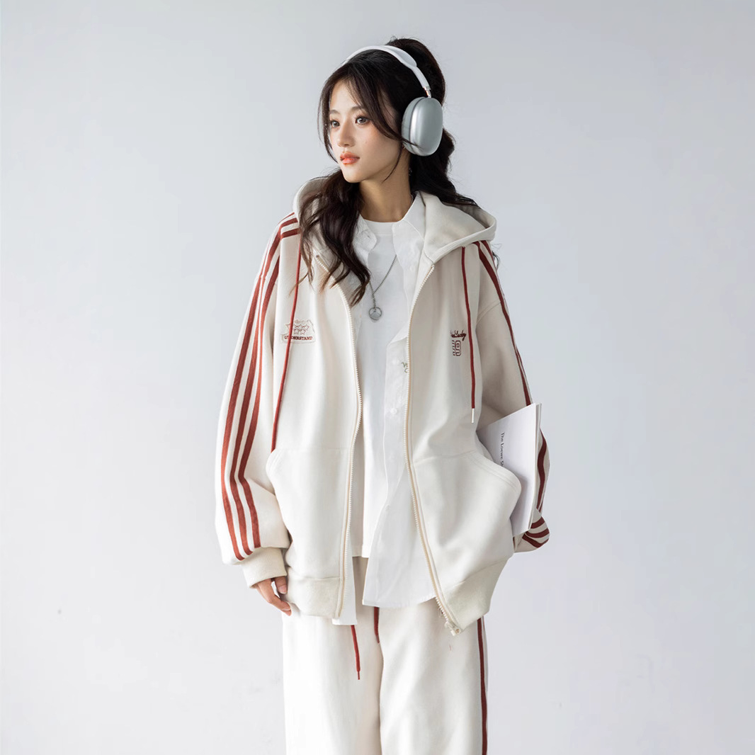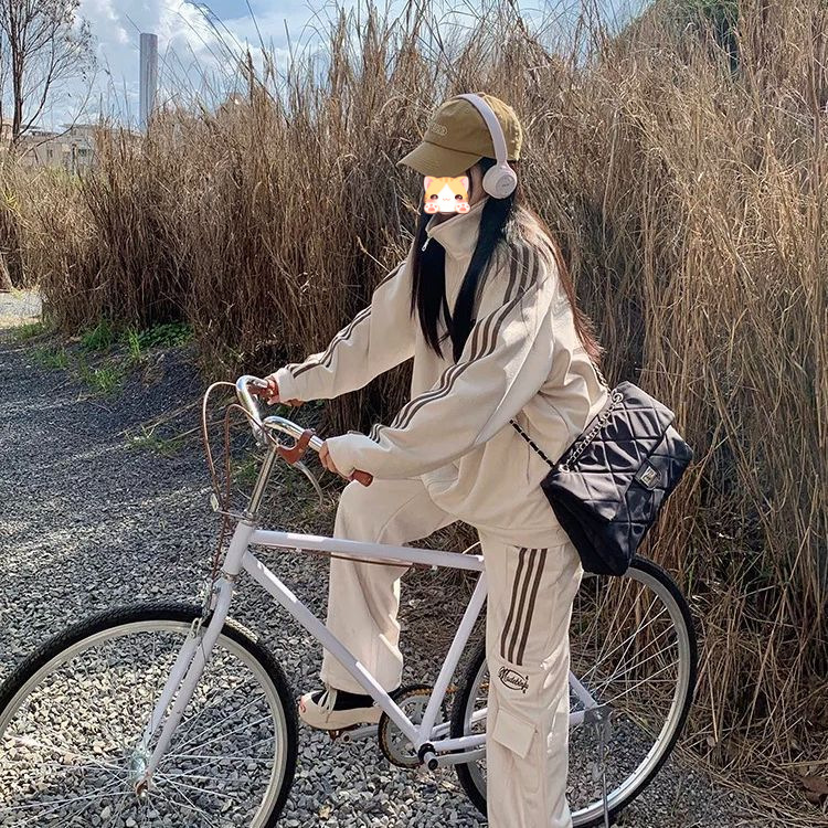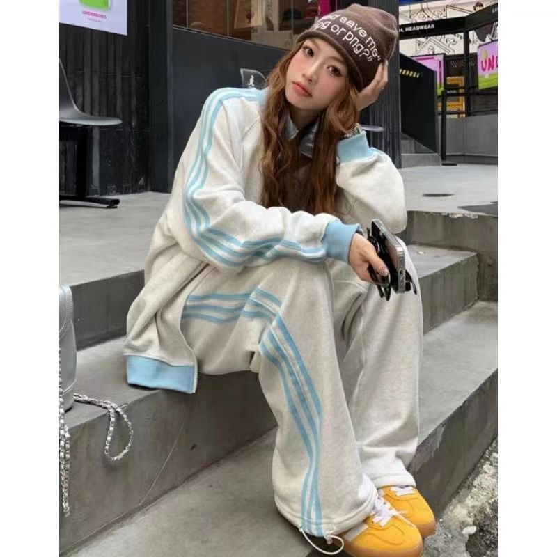 美式学院风休闲运动服套装女春秋学生宽松百搭开衫卫衣跑步两件套
