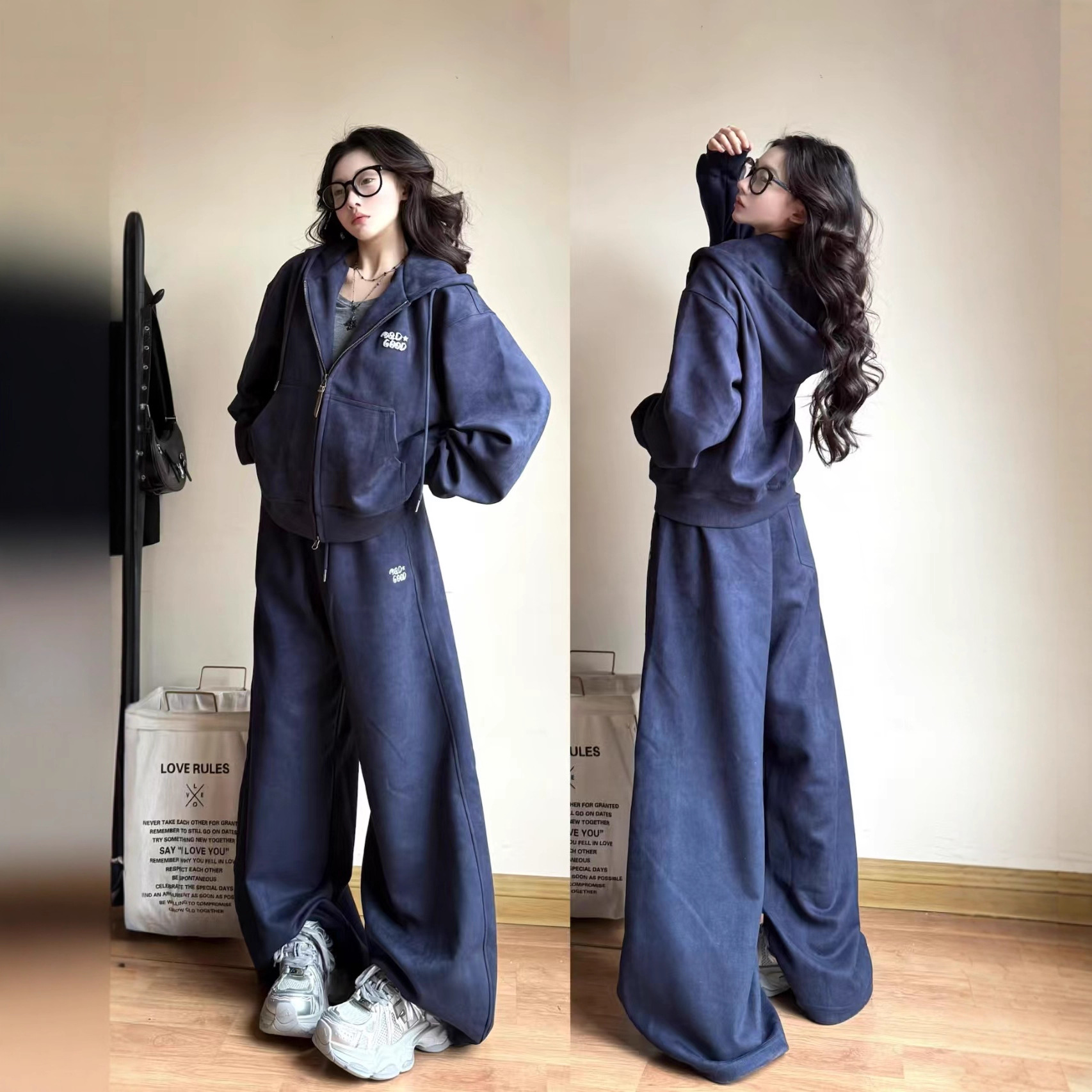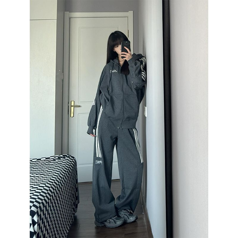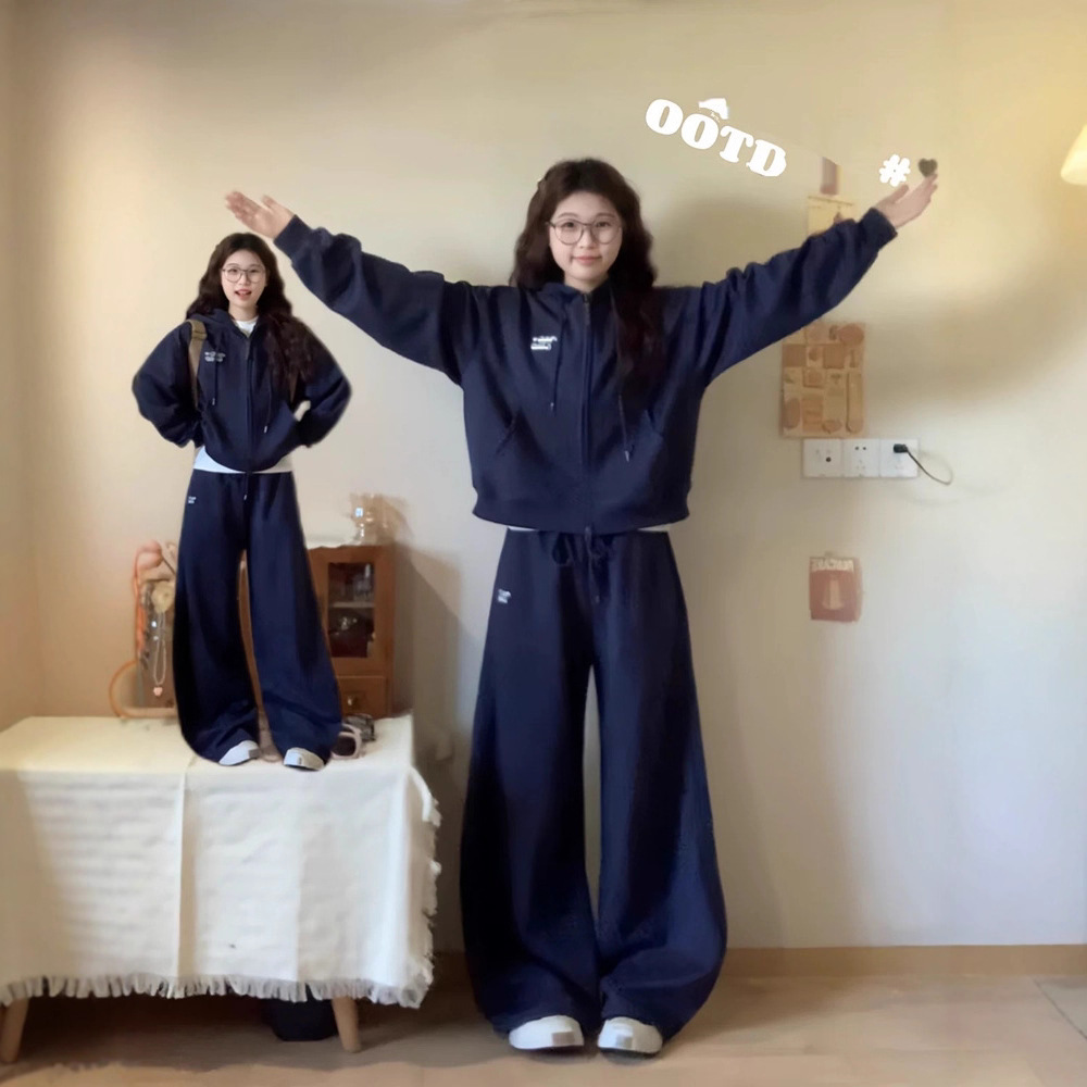 秋冬季高级感休闲时尚运动套装女学生慵懒风开衫卫衣阔腿裤两件套