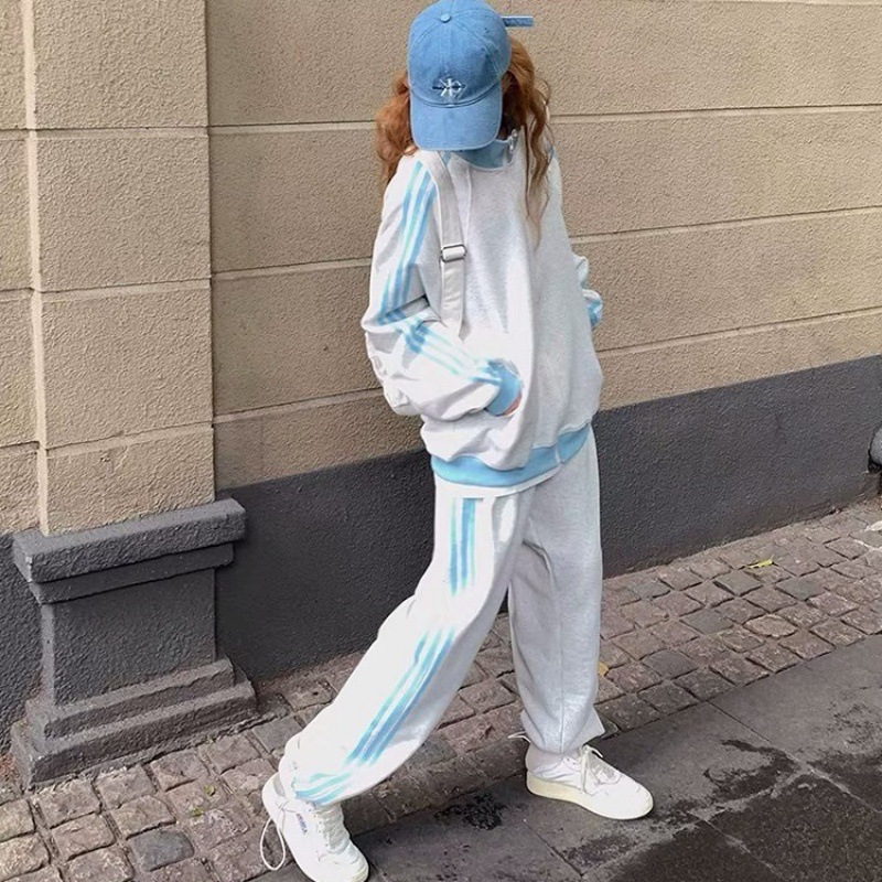 纯棉慵懒学院风卫衣卫裤运动套装女秋季宽松一整套美式休闲两件套