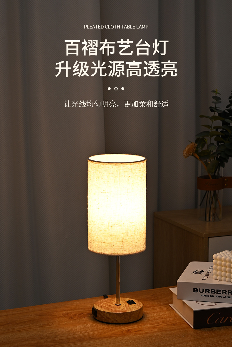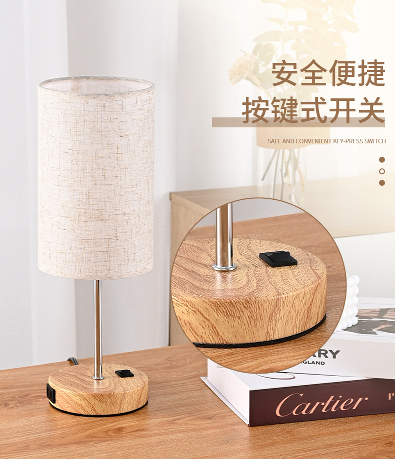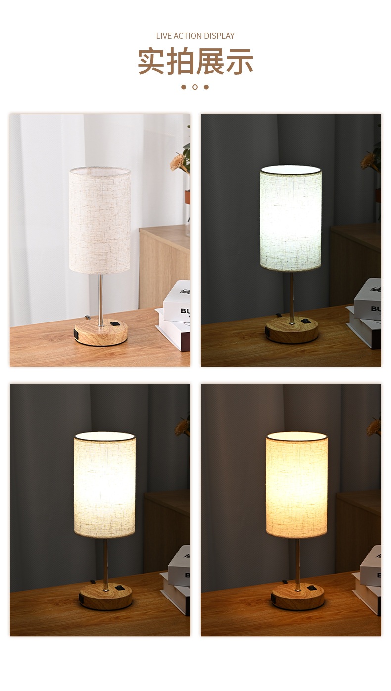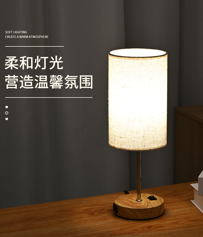 跨境爆款usb实木布艺台灯装饰卧室床头灯书房民宿舍定制led小夜灯