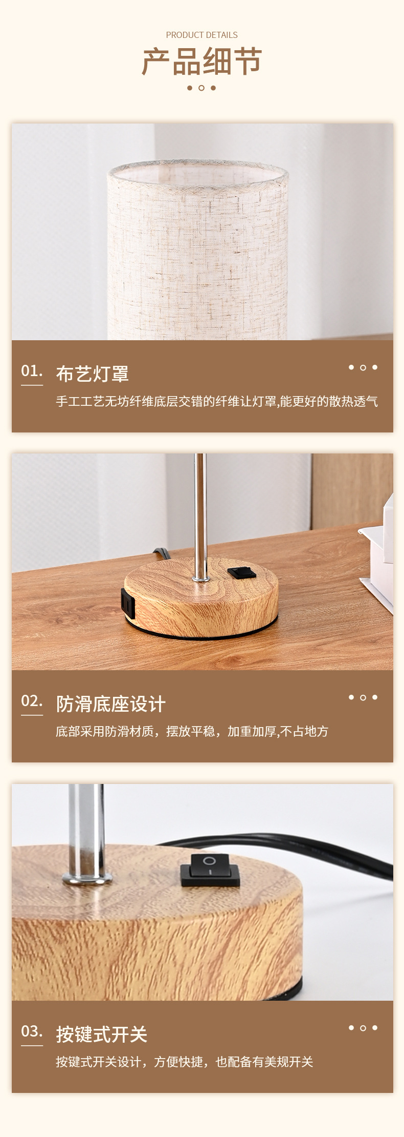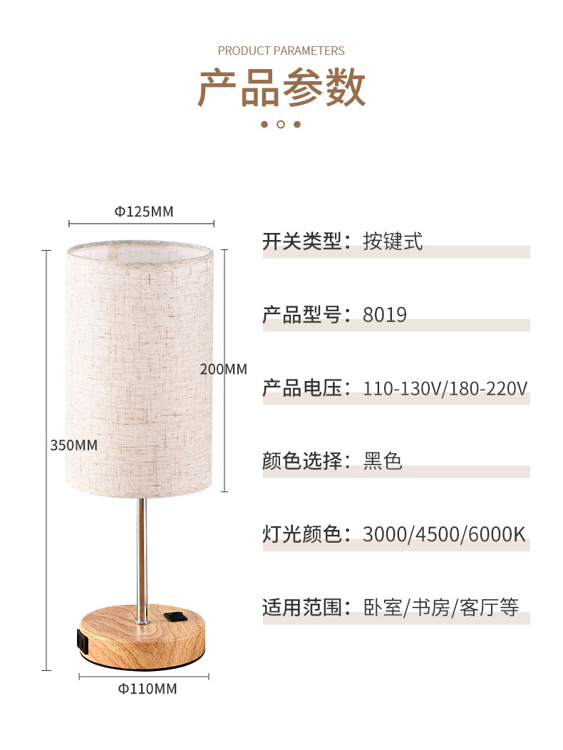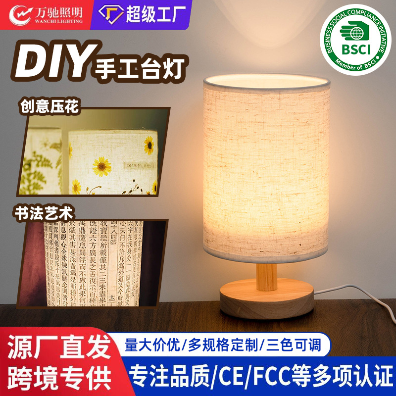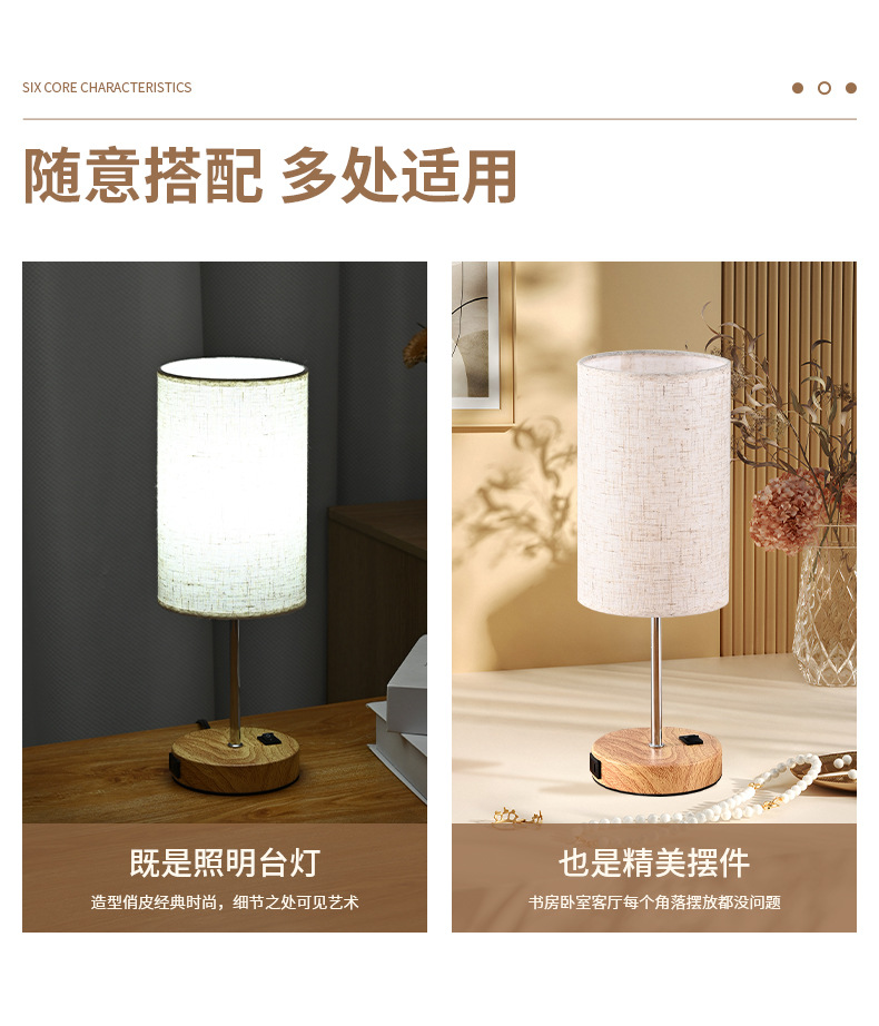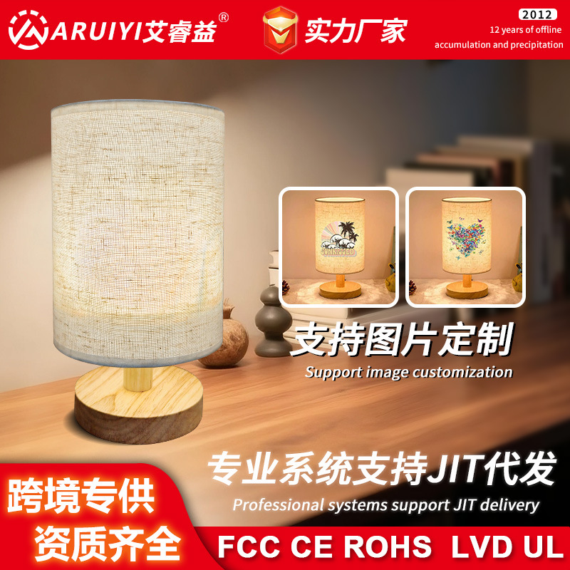 跨境爆款usb实木布艺台灯装饰卧室床头灯书房民宿舍定制led小夜灯