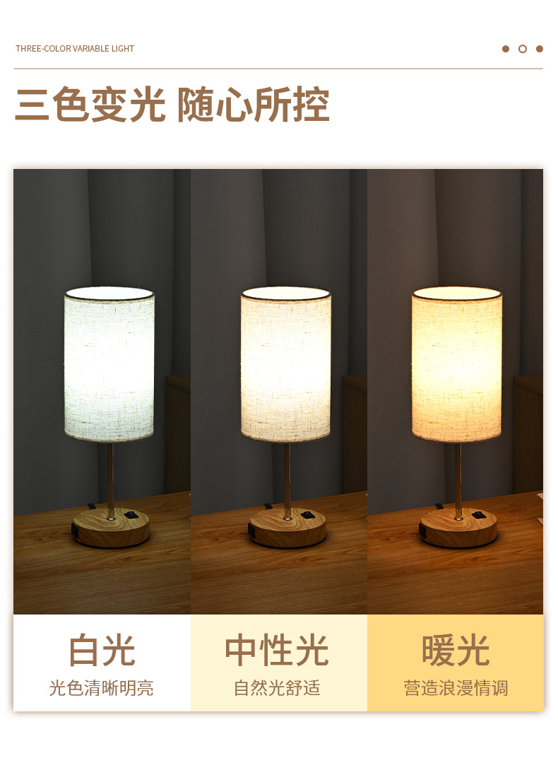 国境を越えたAmazon人気のナイトライト木目調3速タッチ調光布カバーベッドサイドランプアメリカ標準装飾テーブルランプ